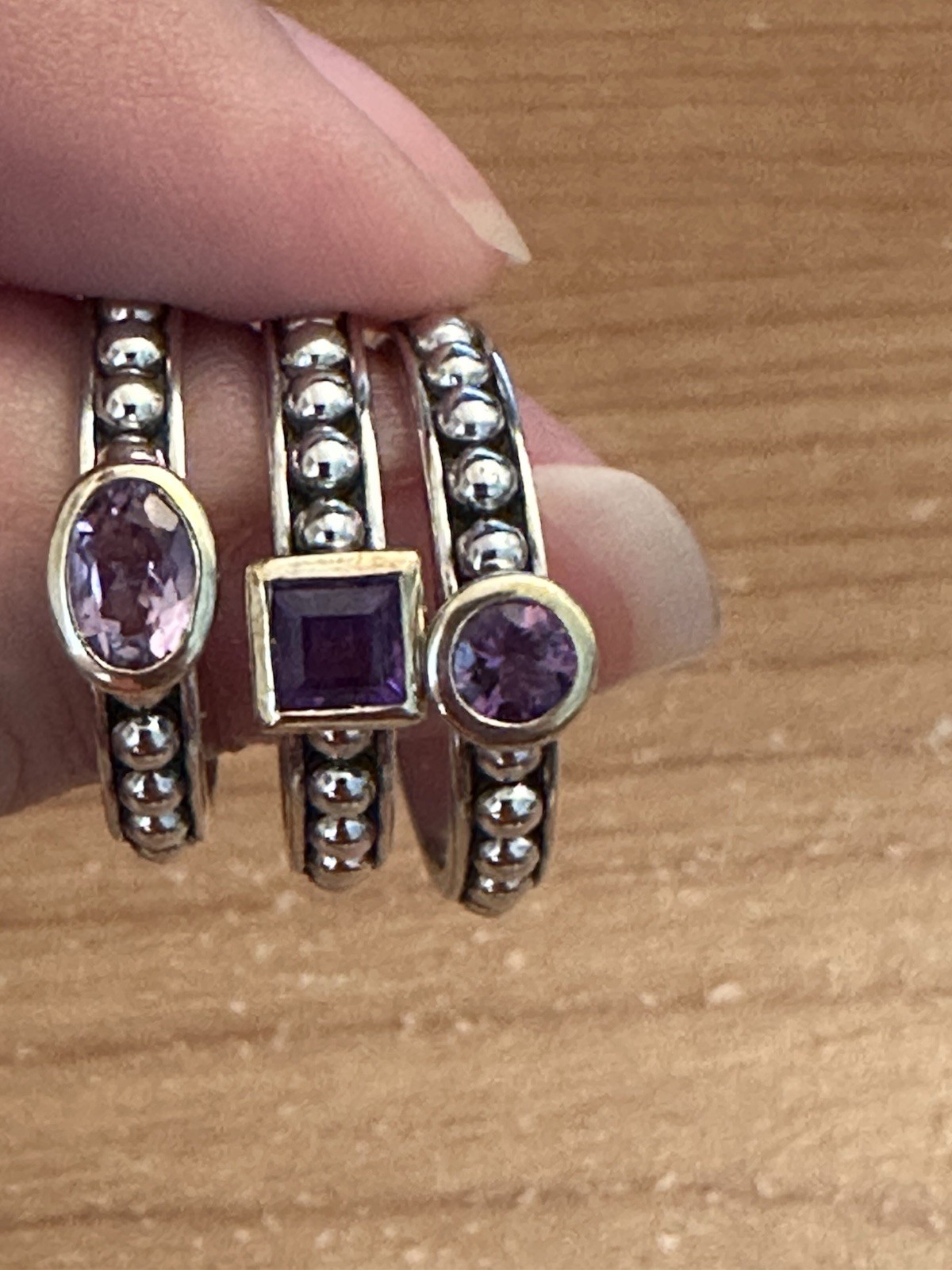как выглядит Belle Artique Sterling 14K Plated Amethyst Beaded Set of 3 Rings Size 7 NEW фото