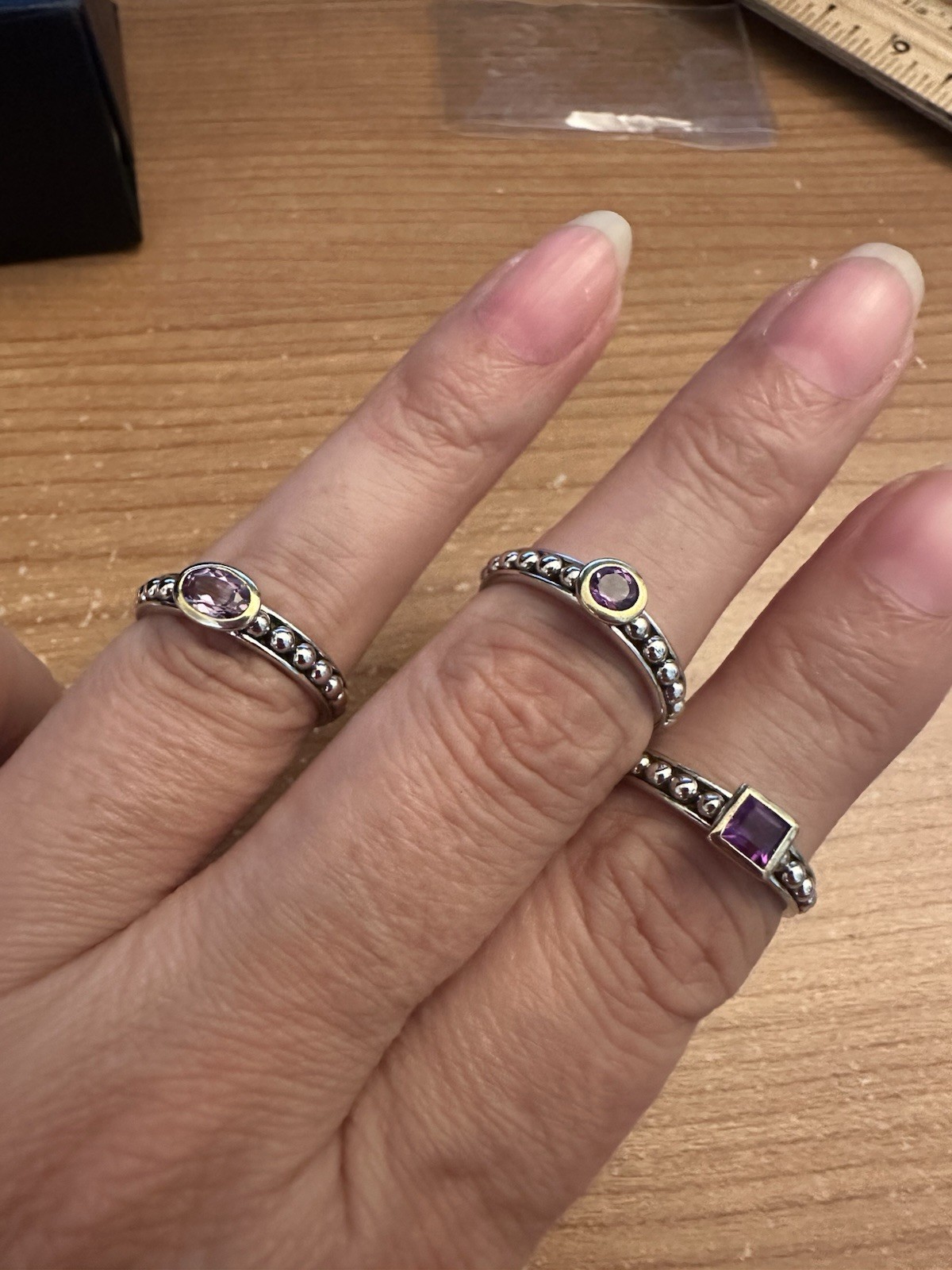 Belle Artique Sterling 14K Plated Amethyst Beaded Set of 3 Rings Size 7 NEW