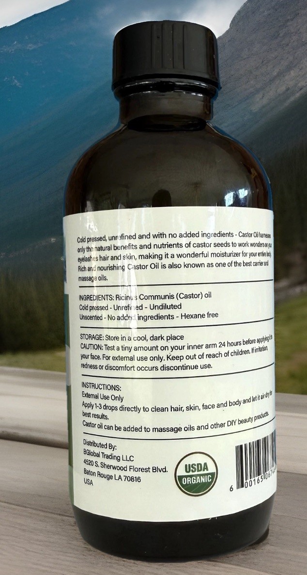 Organic Castor Oil 120mil - Glass Bottle - Cold Pressed Hexane-Free.