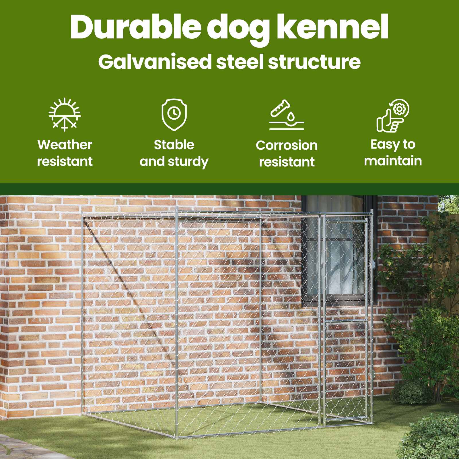 Dog Cage with Door Outdoor Pet Crate House Kennel Gray Galvanized Steel vidaXL