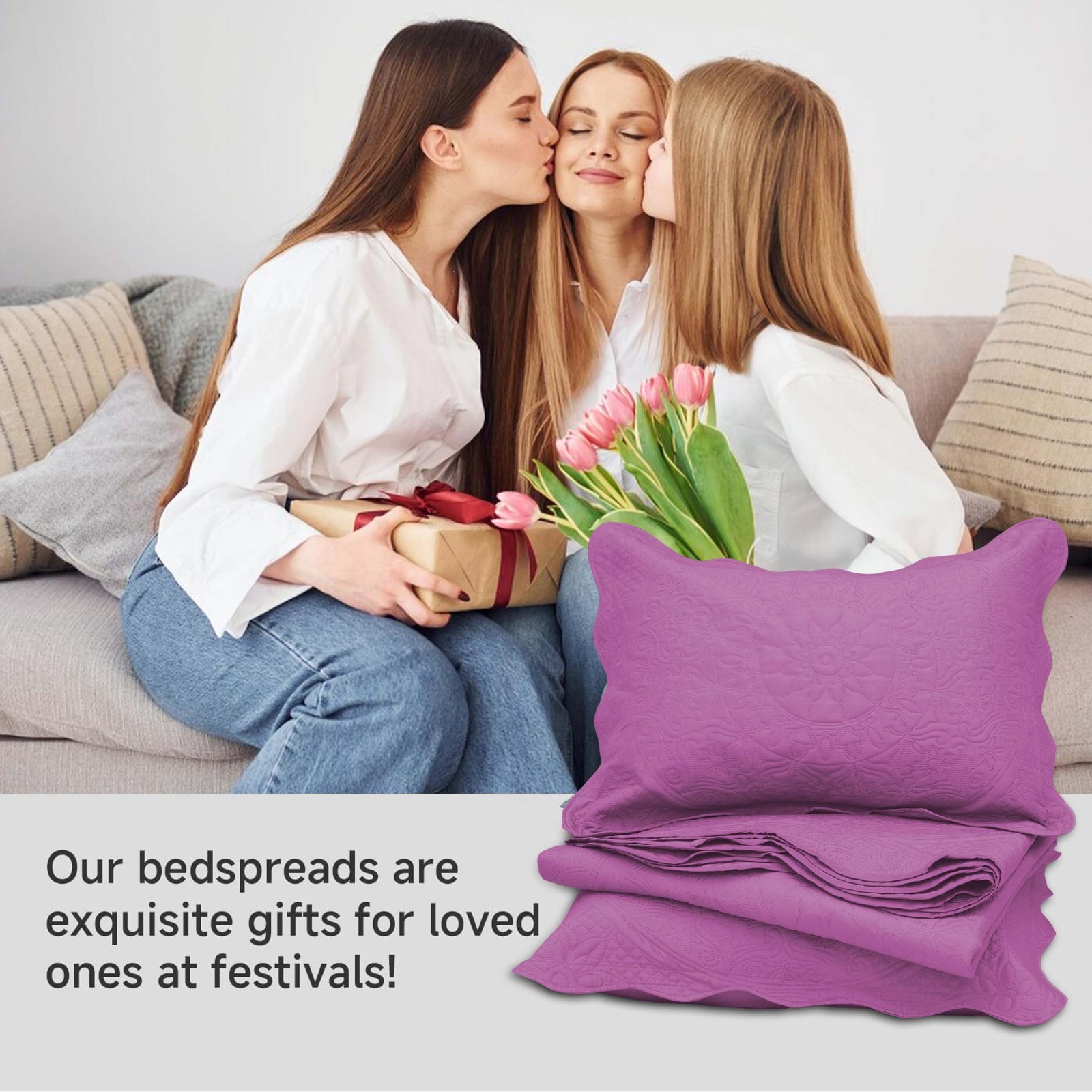 Quilted Floral Bedspread Quilt Bedding Set Microfiber Coverlet Comforter Sets