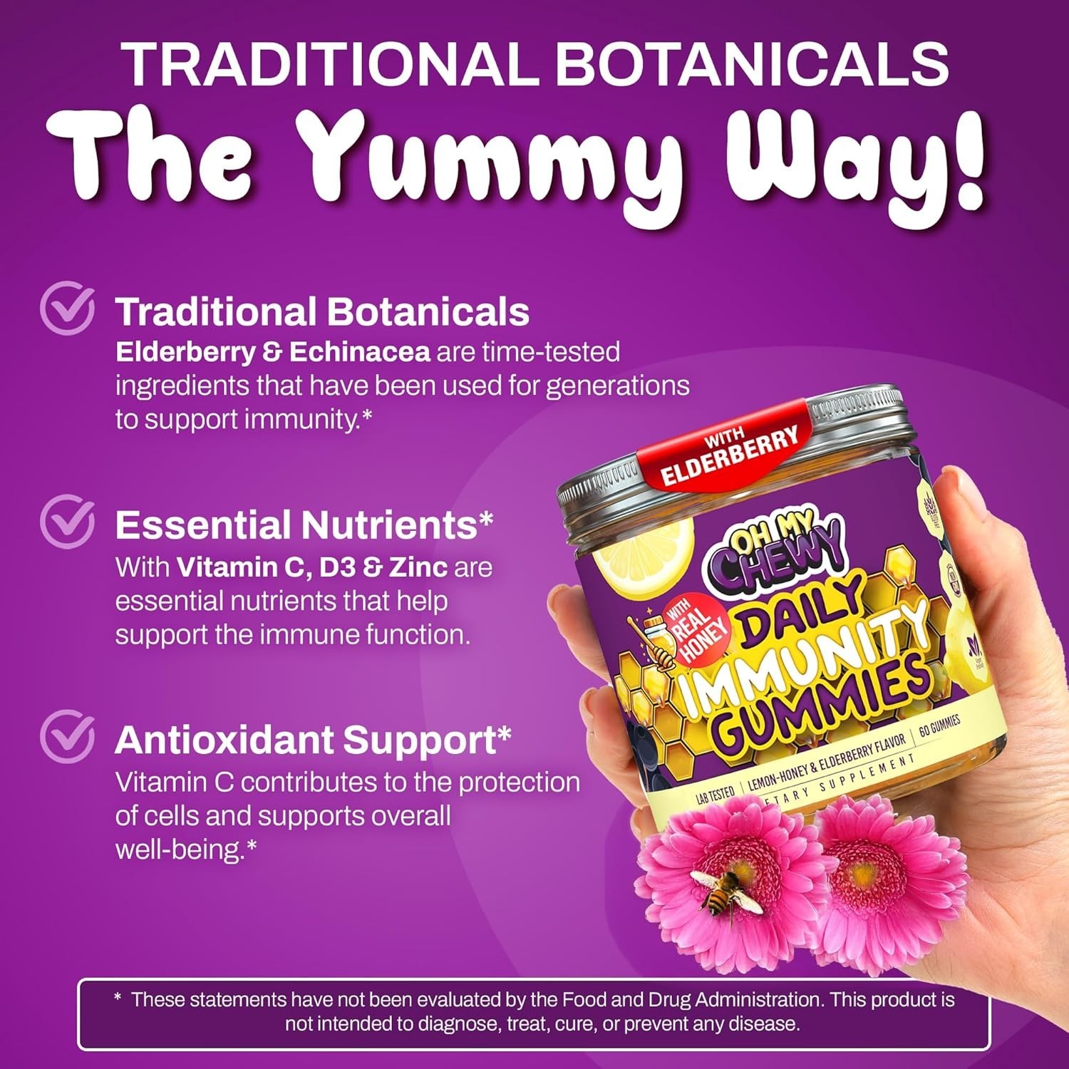 Elderberry Gummies Immunity Support Vitamin C, Echinacea, and Zinc Kids Teens