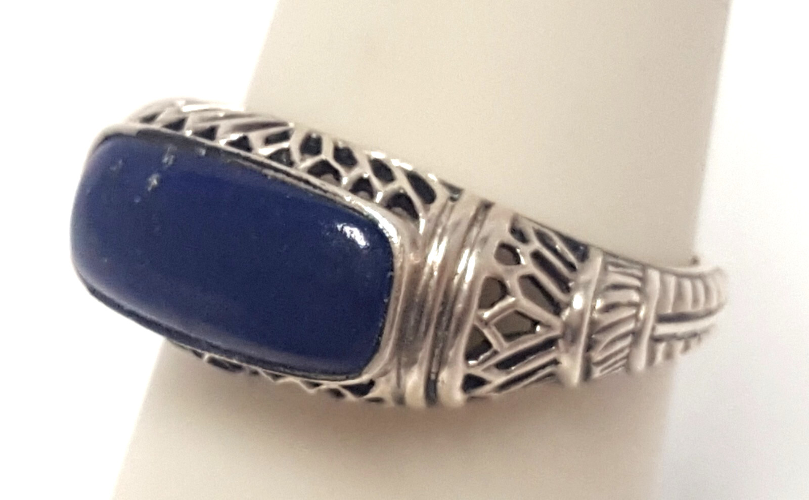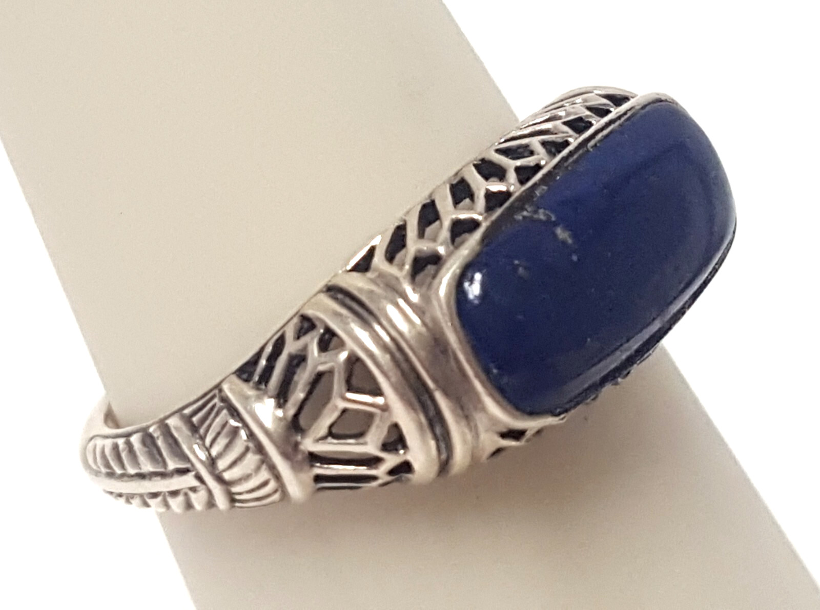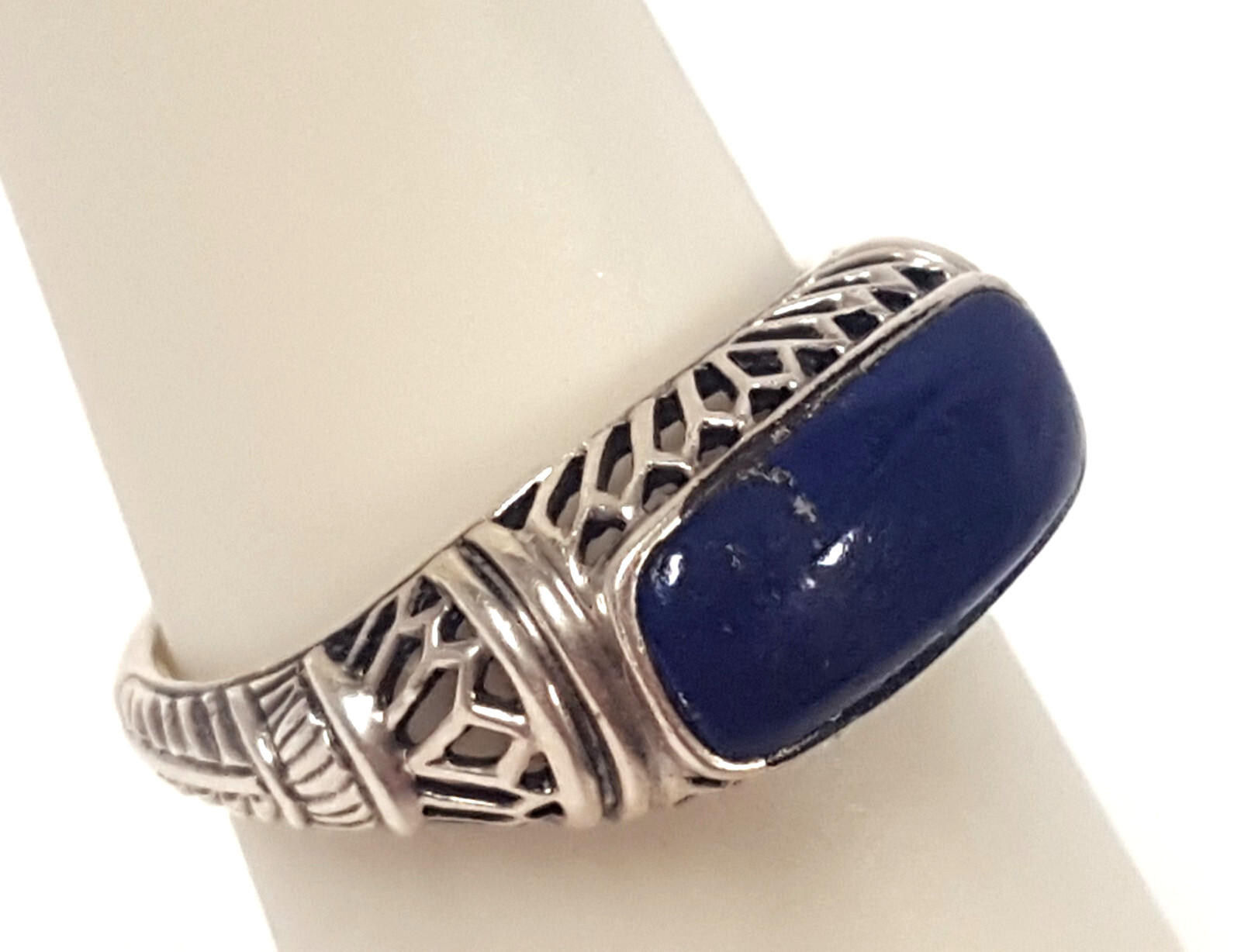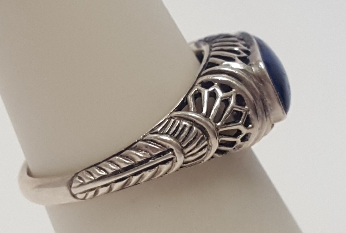 Blue Lapis Lazuli Sterling Ring Size 7 Silver 925 Openwork Thailand CNA Vtg