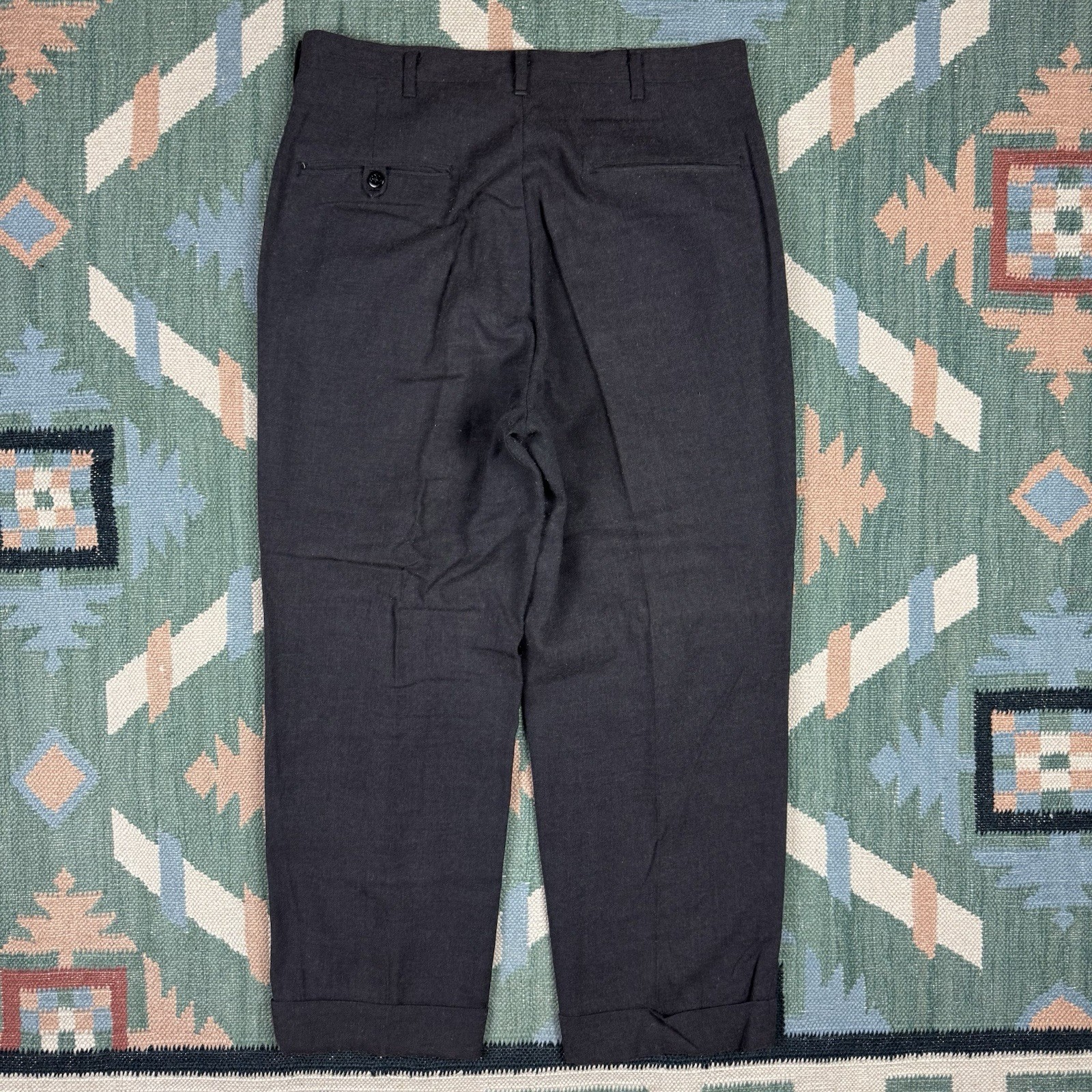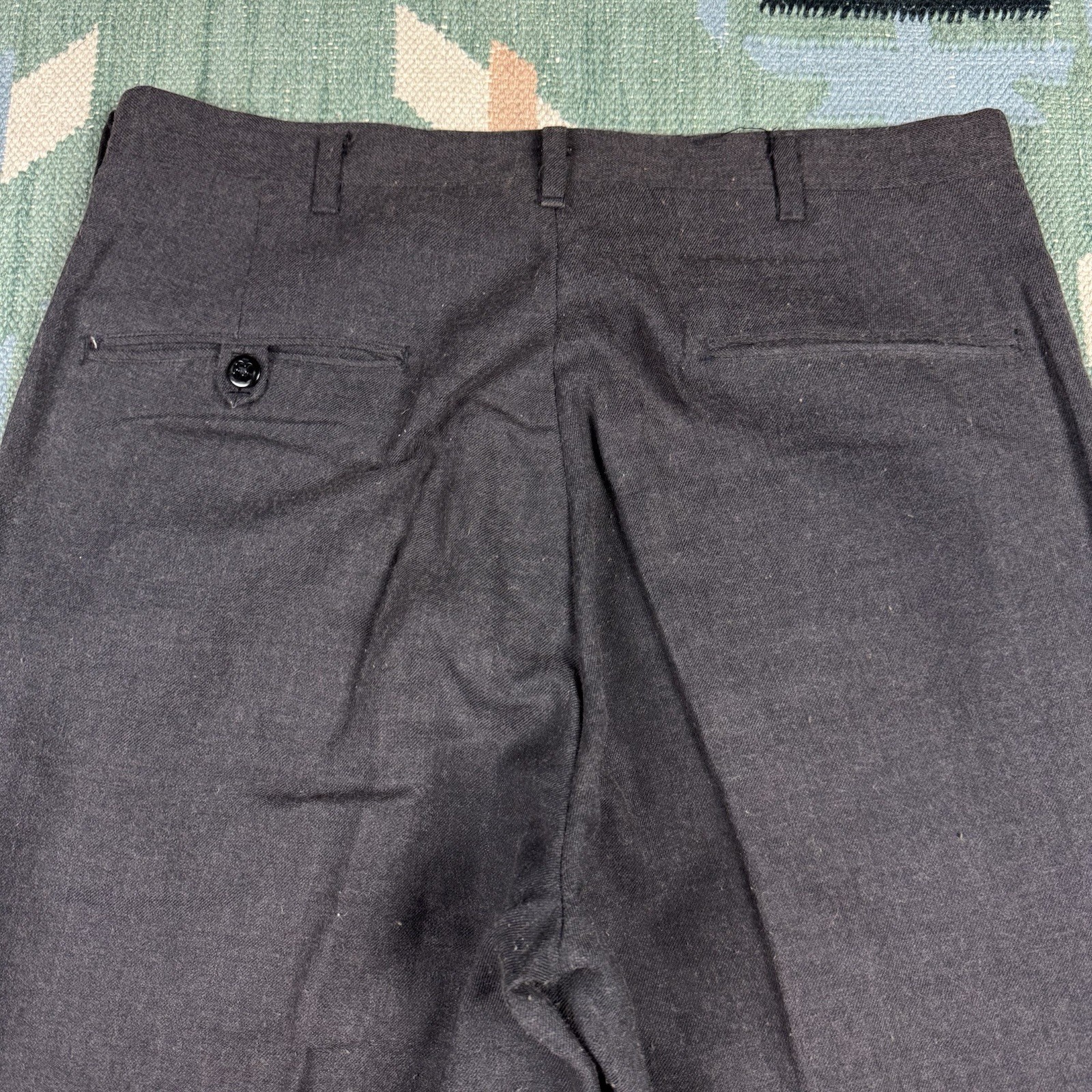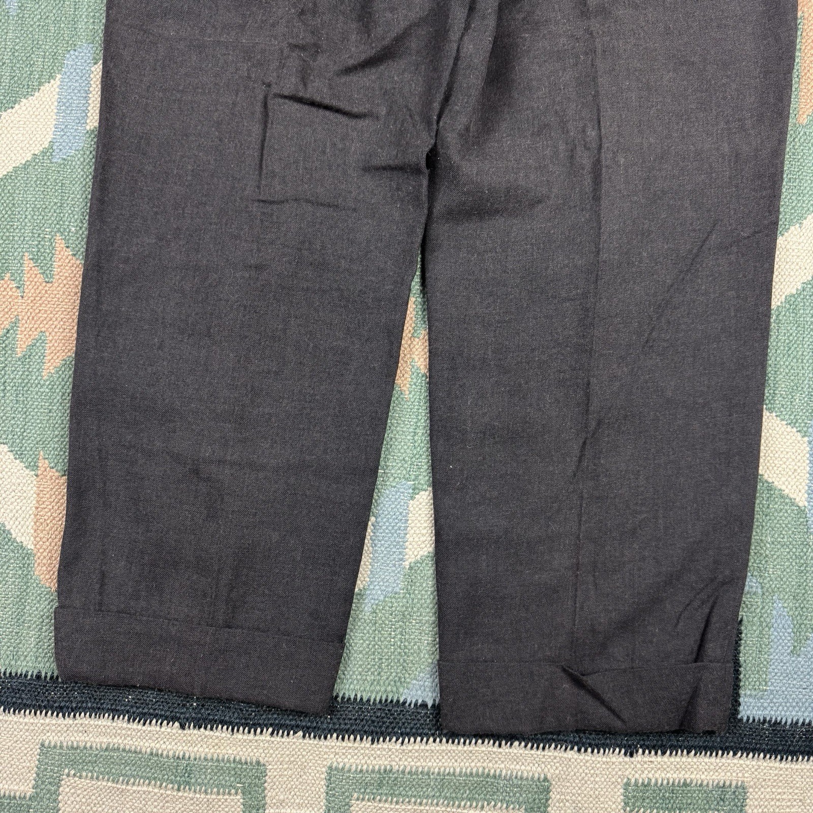 как выглядит Vintage 50s Wool Gabardine Trouser Pants Black Mens Size 30x24 Drop Loop фото