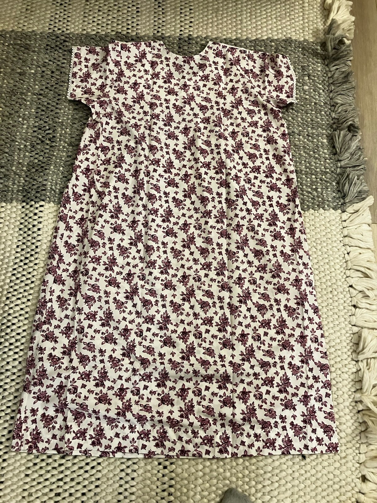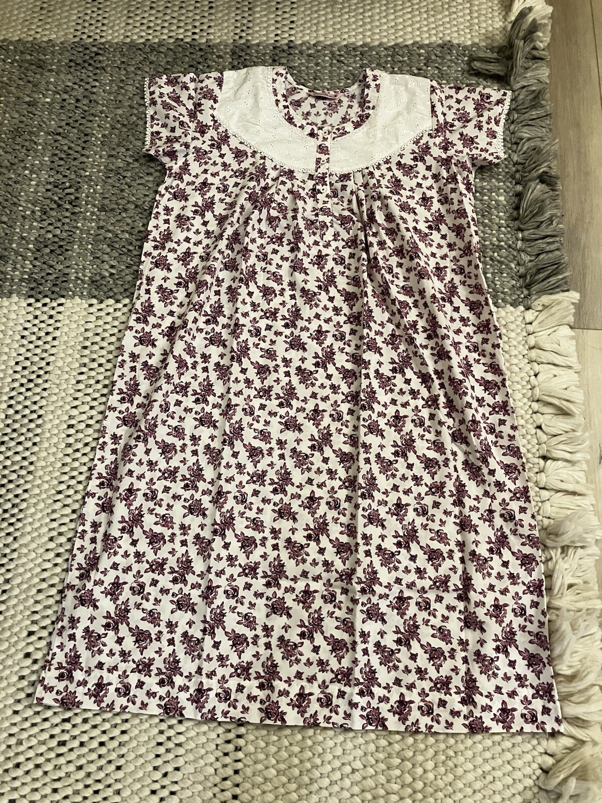 как выглядит Women s Traditional Indian Nightgown XL Purple Floral With Buttons, Long фото