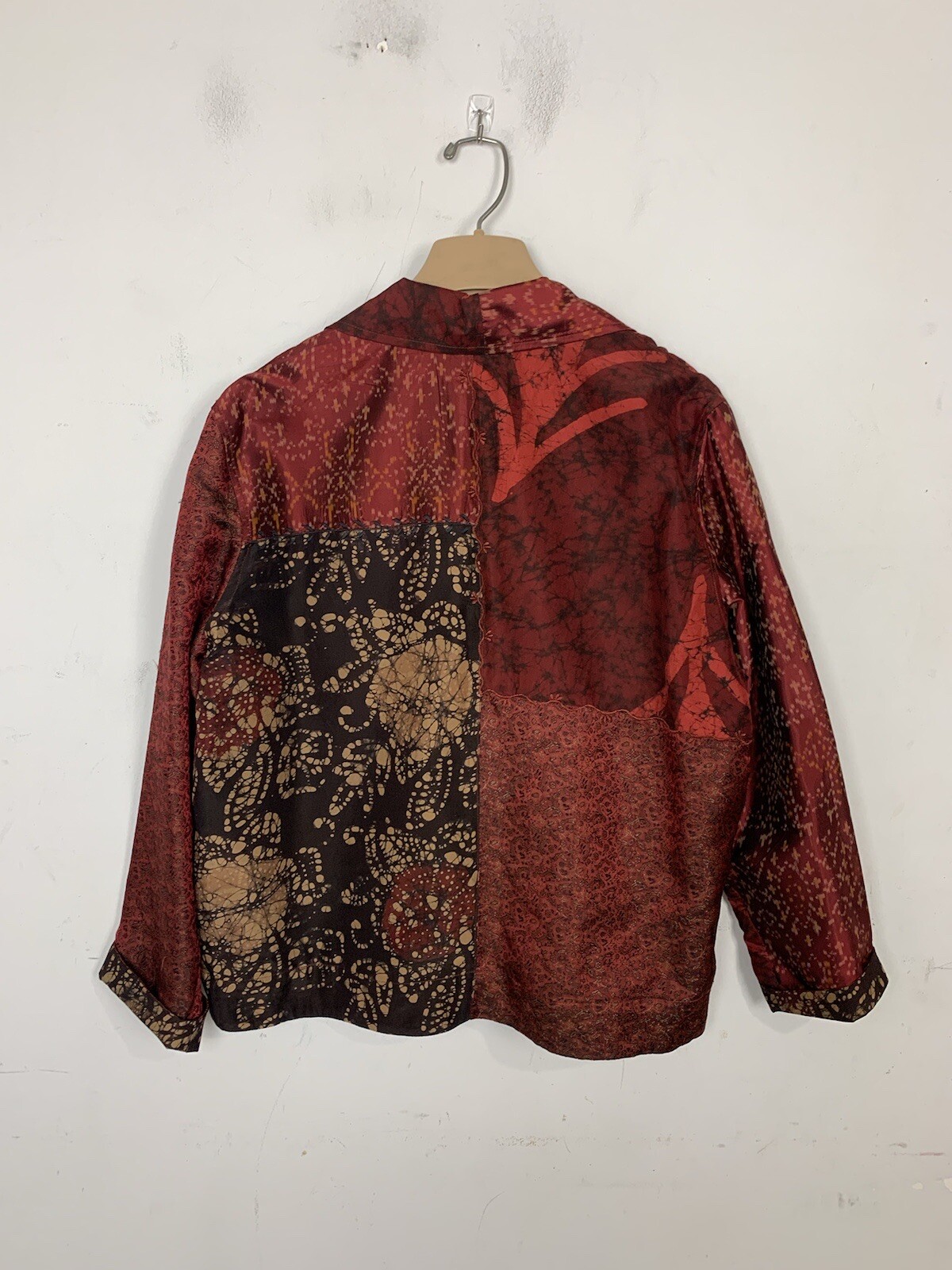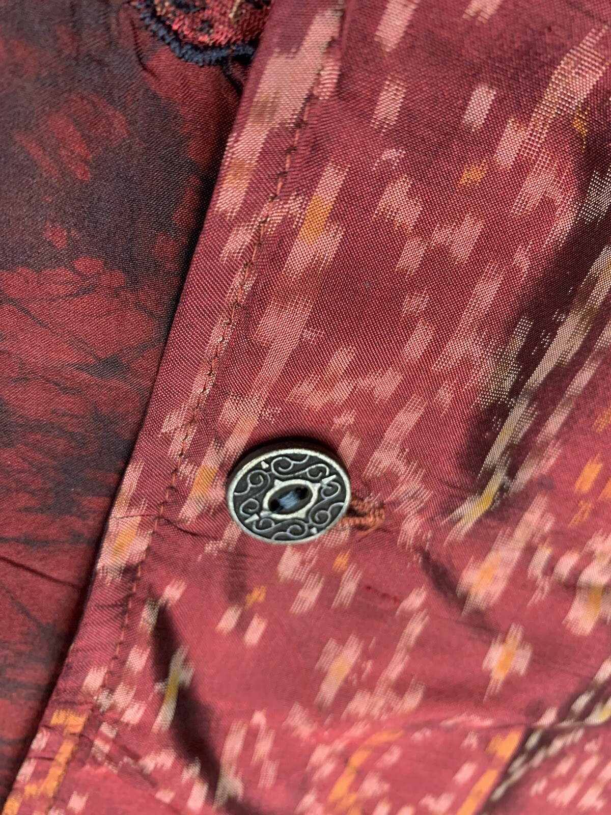 как выглядит Chicos Womens Jacket Blazer 2 Red Fall Fairy Silk Patchwork Embroidered Boho фото
