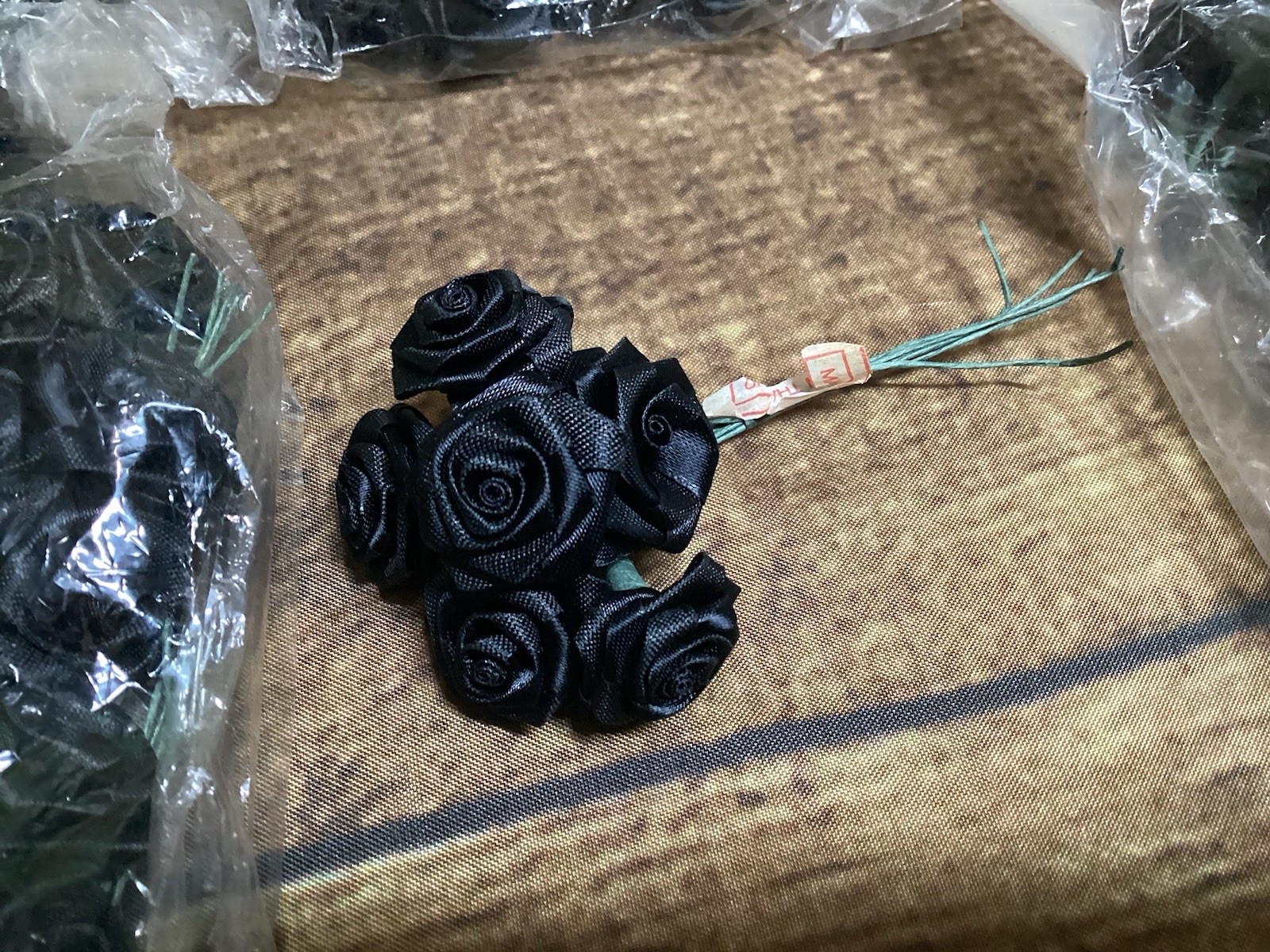 504 Vintage 5/8 Black Satin Ribbon Rose Flowers Wire Stem Wedding Crafts NOS