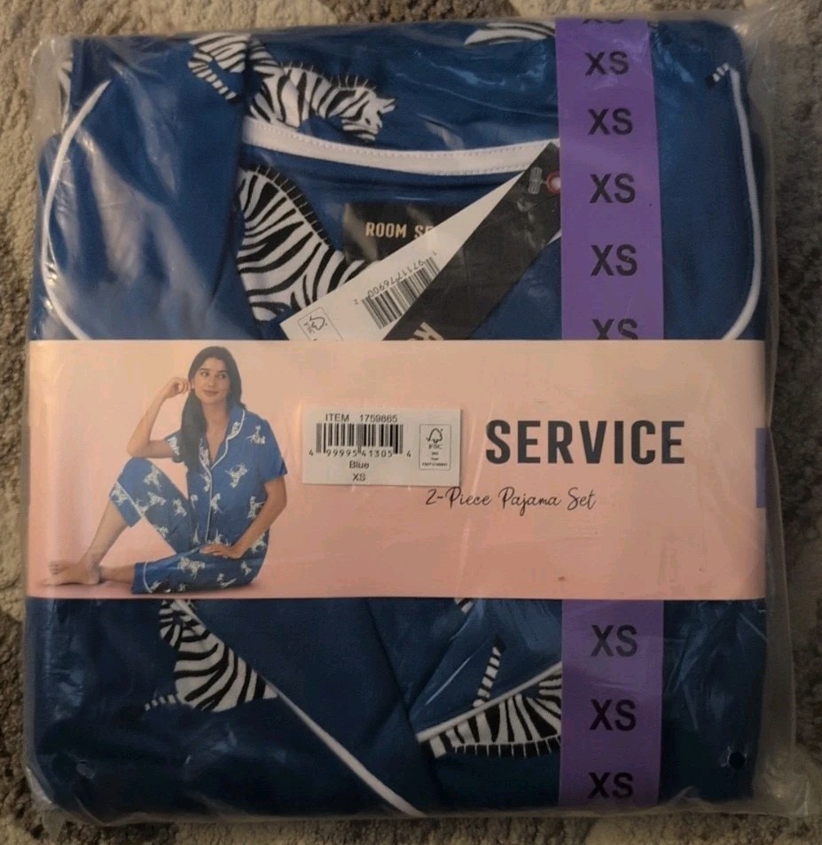 как выглядит Room Service Womens Notch Collar 2pc Zebra Print Capri Pajama Set Blue Size XS фото