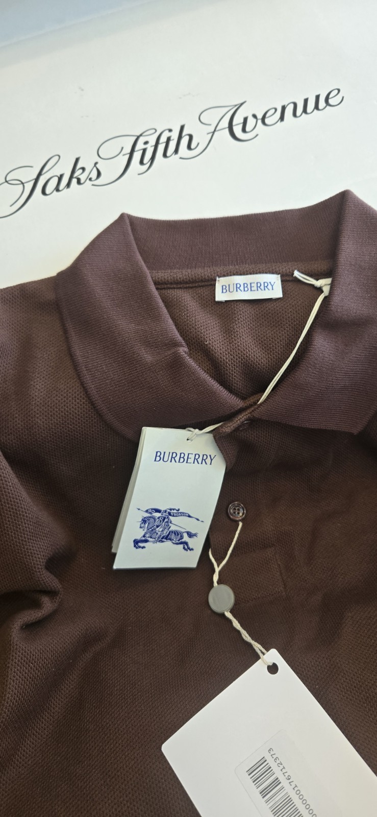 как выглядит 800 New Burberry Limited Edition Men 2XL Polo Shirt Brown Authentic фото