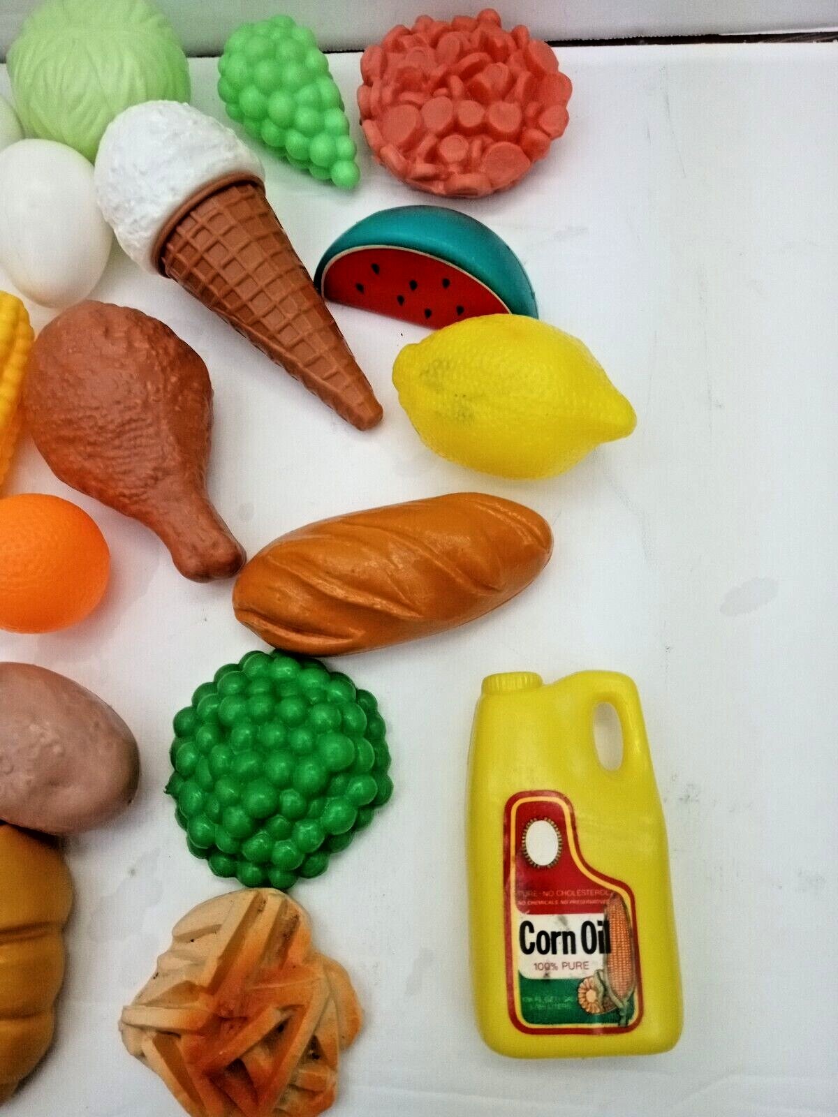 Vintage lot of 20 play food pretend plastic hotdogs fruit veggies more