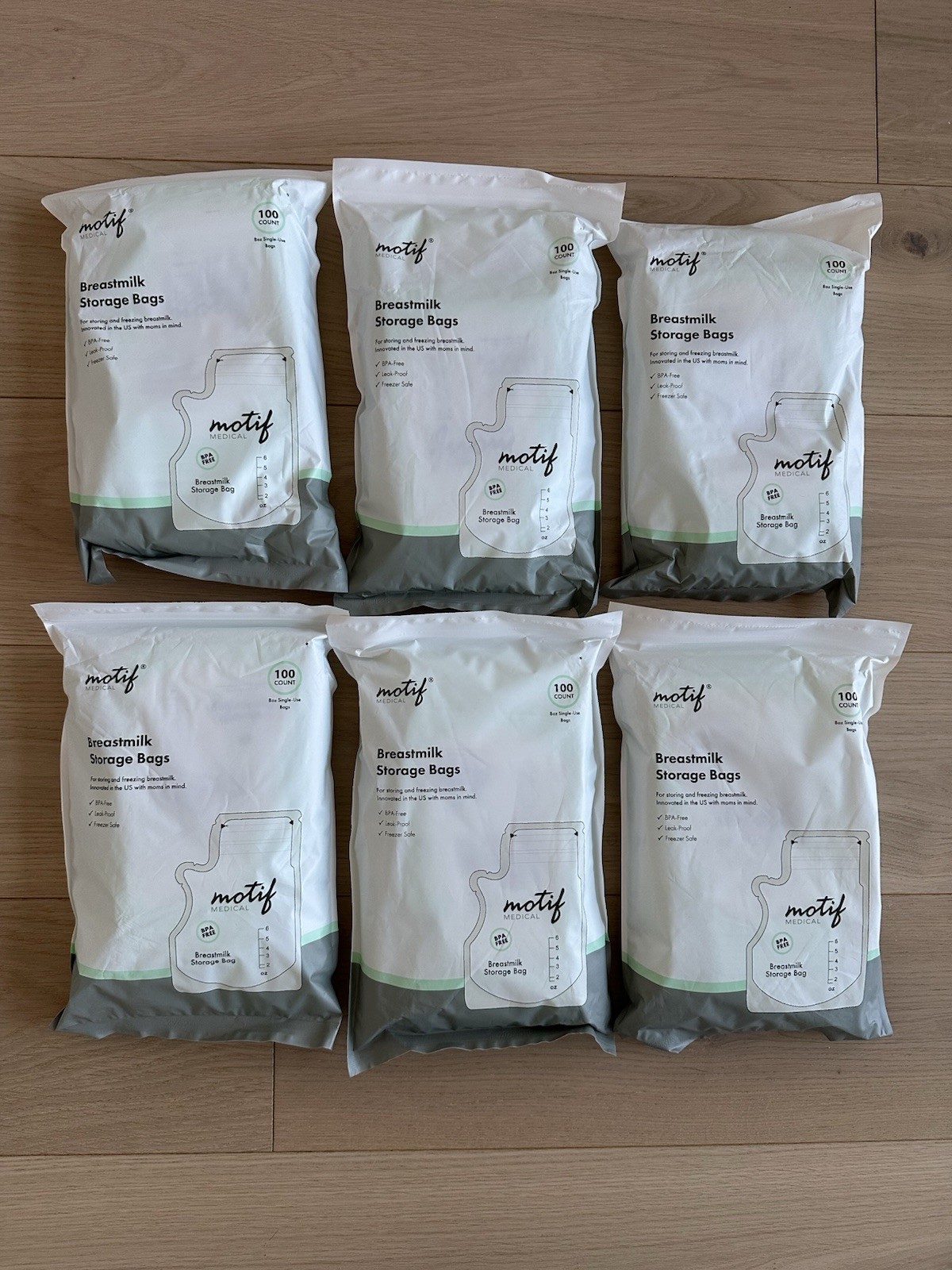 LOT OF 6 MOTIF MEDICAL BREAST MILK STORAGE BAGS 8OZ SINGLE USE BAGS 100 COUNT