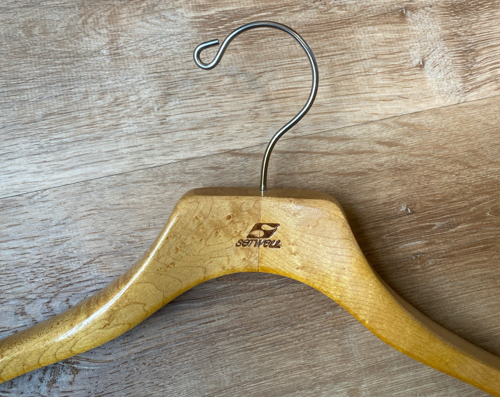 как выглядит Vintage Setwell MCM 18 Wooden Heavy Duty Coat Hanger Made In USA фото