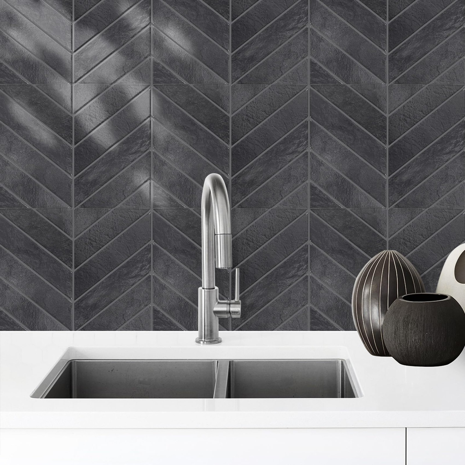 10 Sheets Thicker Herringbone Peel and Stick Backsplash, 12.6 9.7 Stick on ...