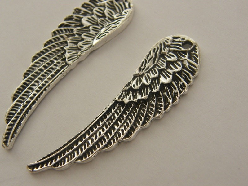 как выглядит 8 Angel wing charms antique silver tone AW12 фото