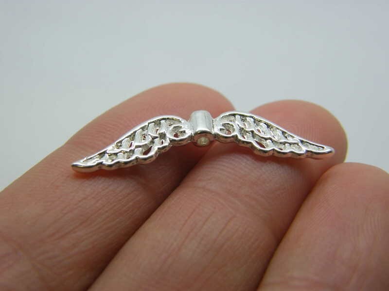 BULK 50 Angel wing spacer beads silver plated tone AW22 - SALE 50 OFF