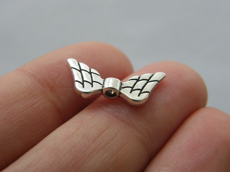 BULK 50 Angel wing bead antique silver tone AW103 - SALE 50 OFF