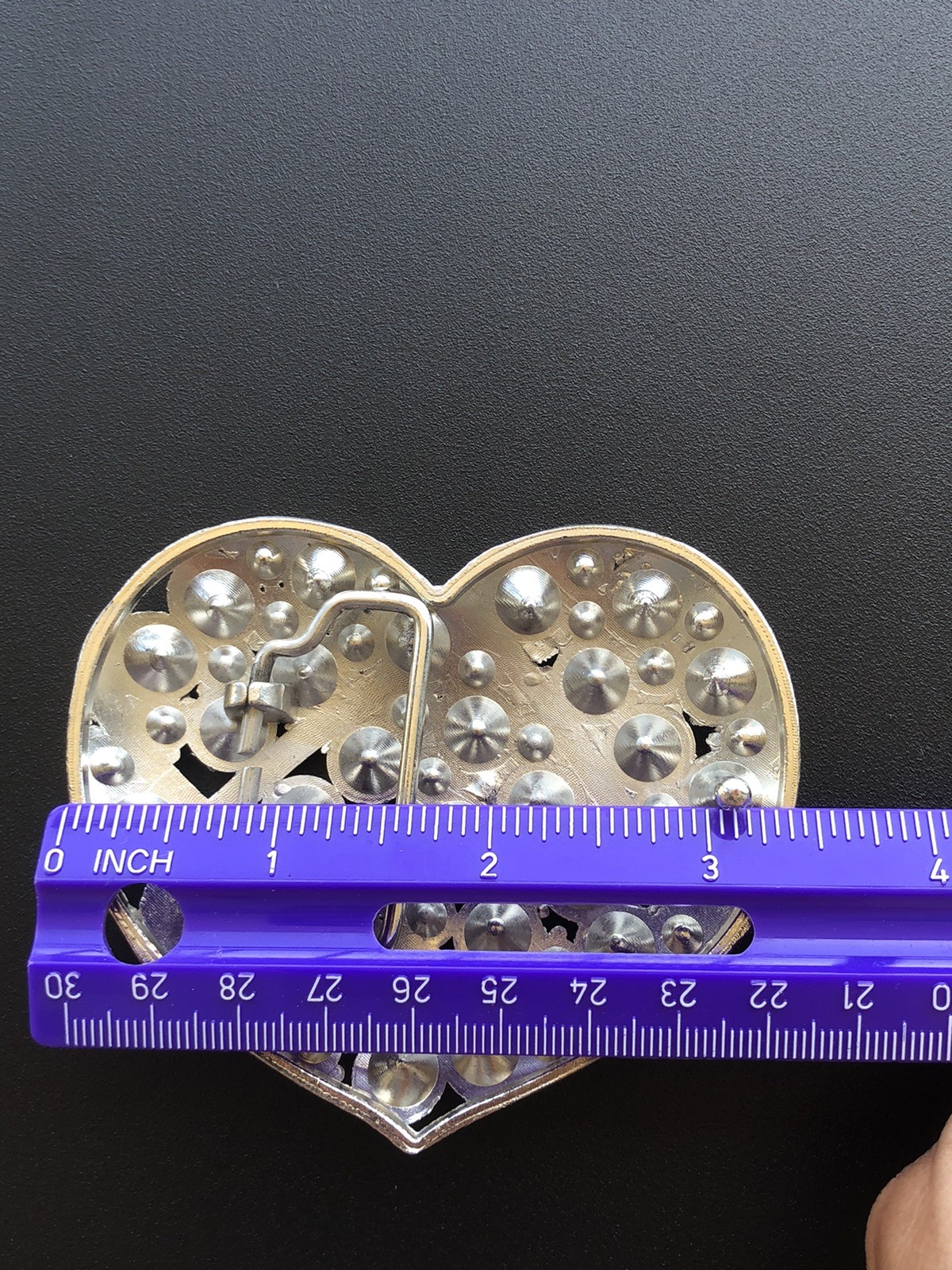 как выглядит Large Heart Shaped Belt Buckle Crystal Rhinestones Silver Toned Snap On Women s фото
