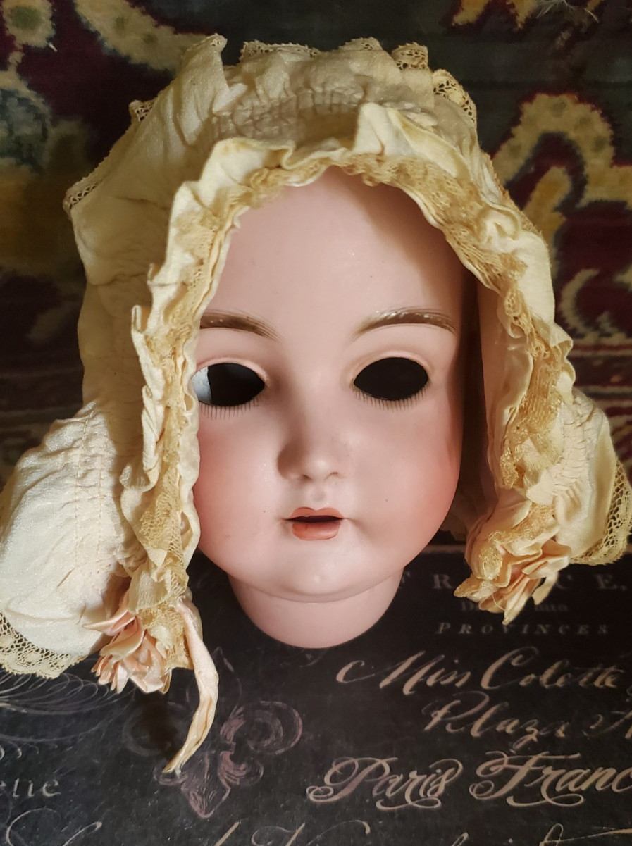 ANTIQUE SILK LINED BABY BONNET GREAT FOR Antique COMPOSITION BISQUE BABY DOLLS