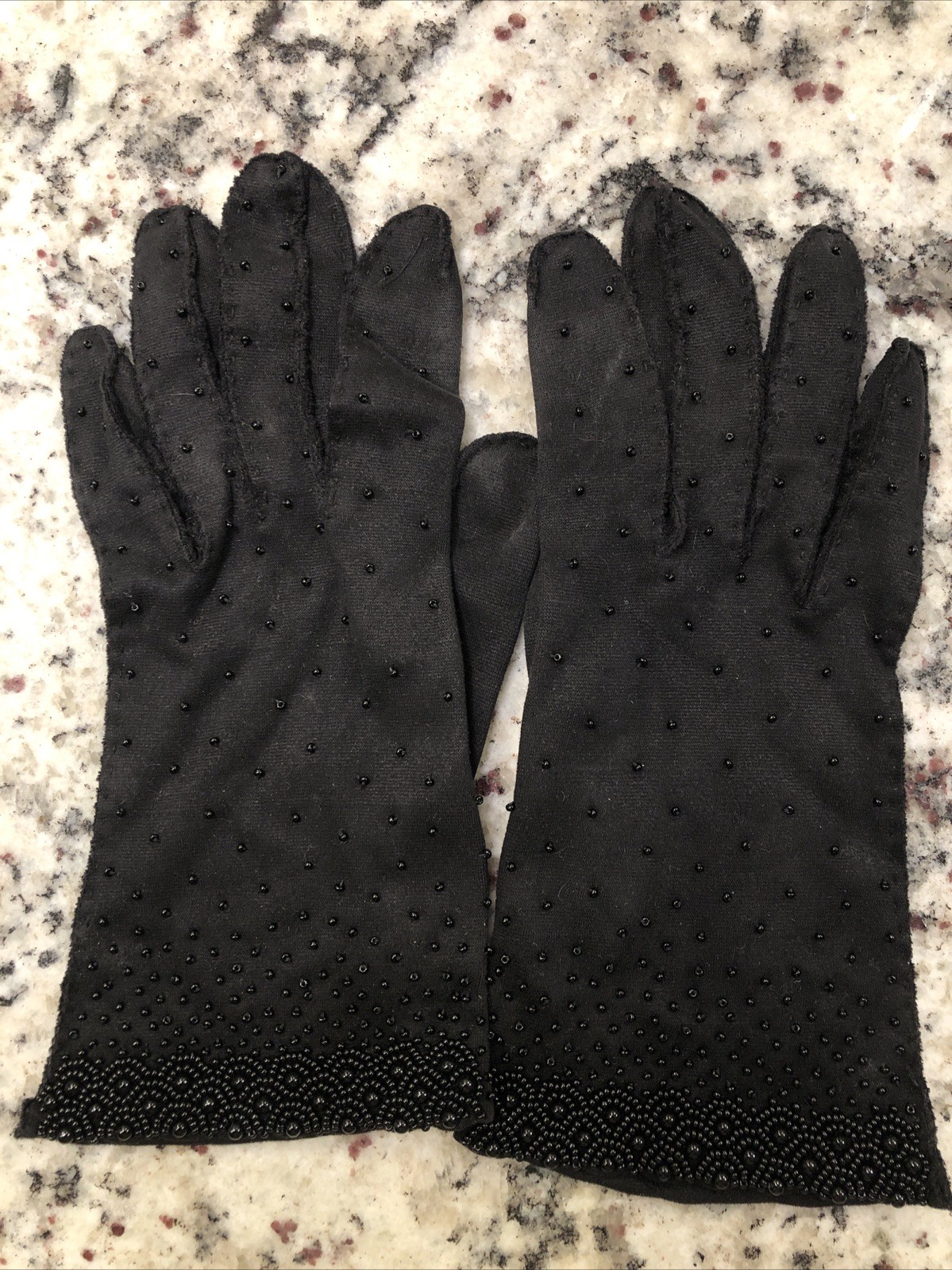 как выглядит Vtg Black Beaded Womens Gloves Dress Party Cocktail 7.5 Sz Cotton Hong Kong фото