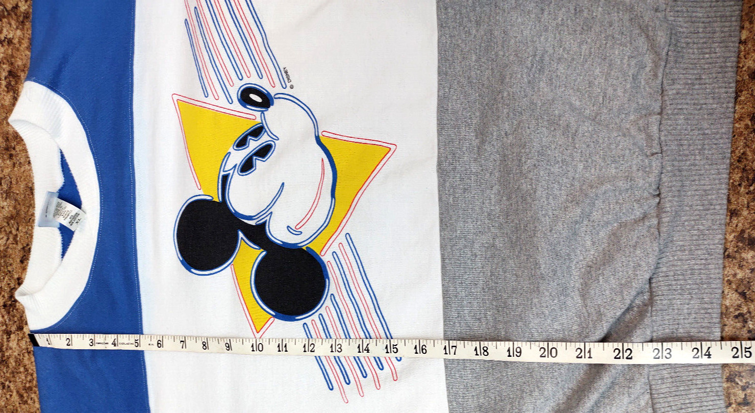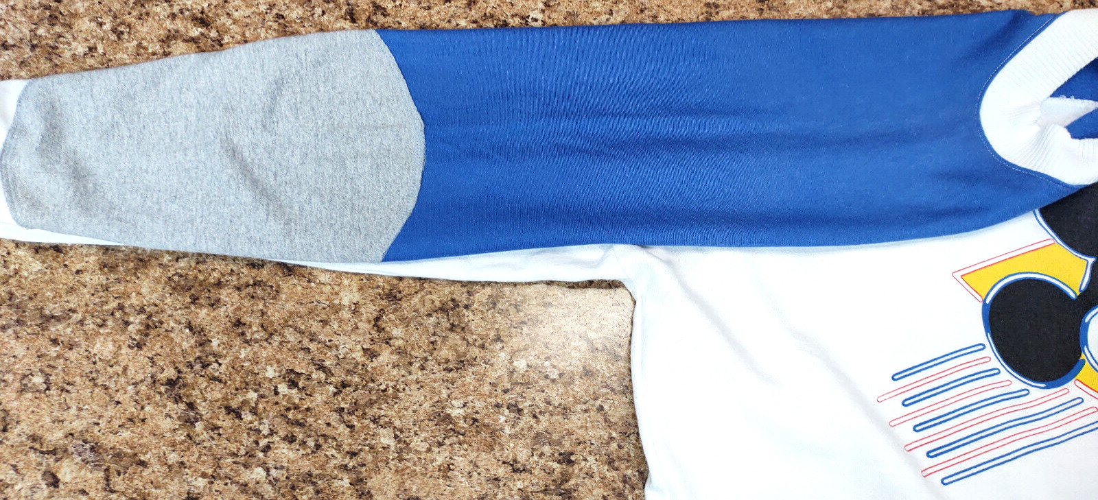 как выглядит Rare Vtg Disney Wear Mickey Mouse Head Pull Over Sweatshirt White Blue Grey XL фото