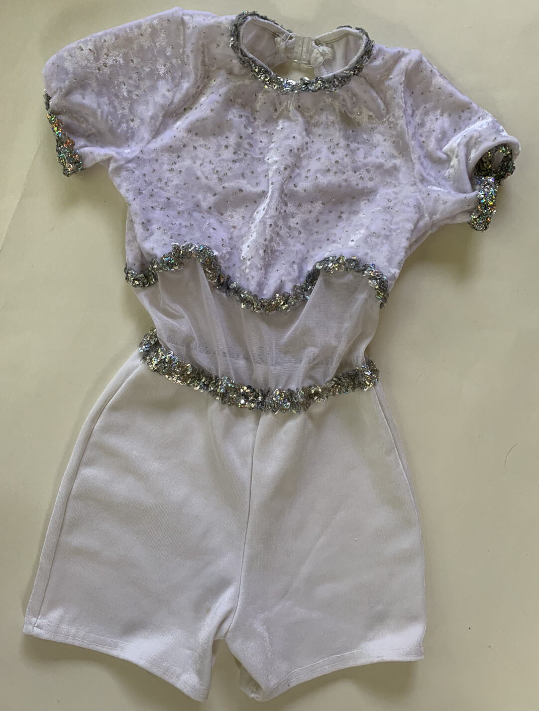 White Sequin Dance Costume Rockin In The USA A Wish Come True Medium Child 8-10