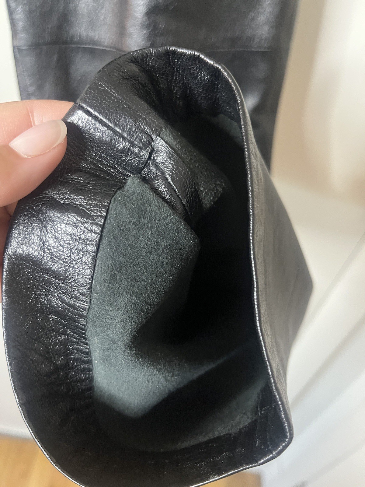 как выглядит Vintage 90s mix it Black Genuine Leather Straight Leg Pants high rise фото