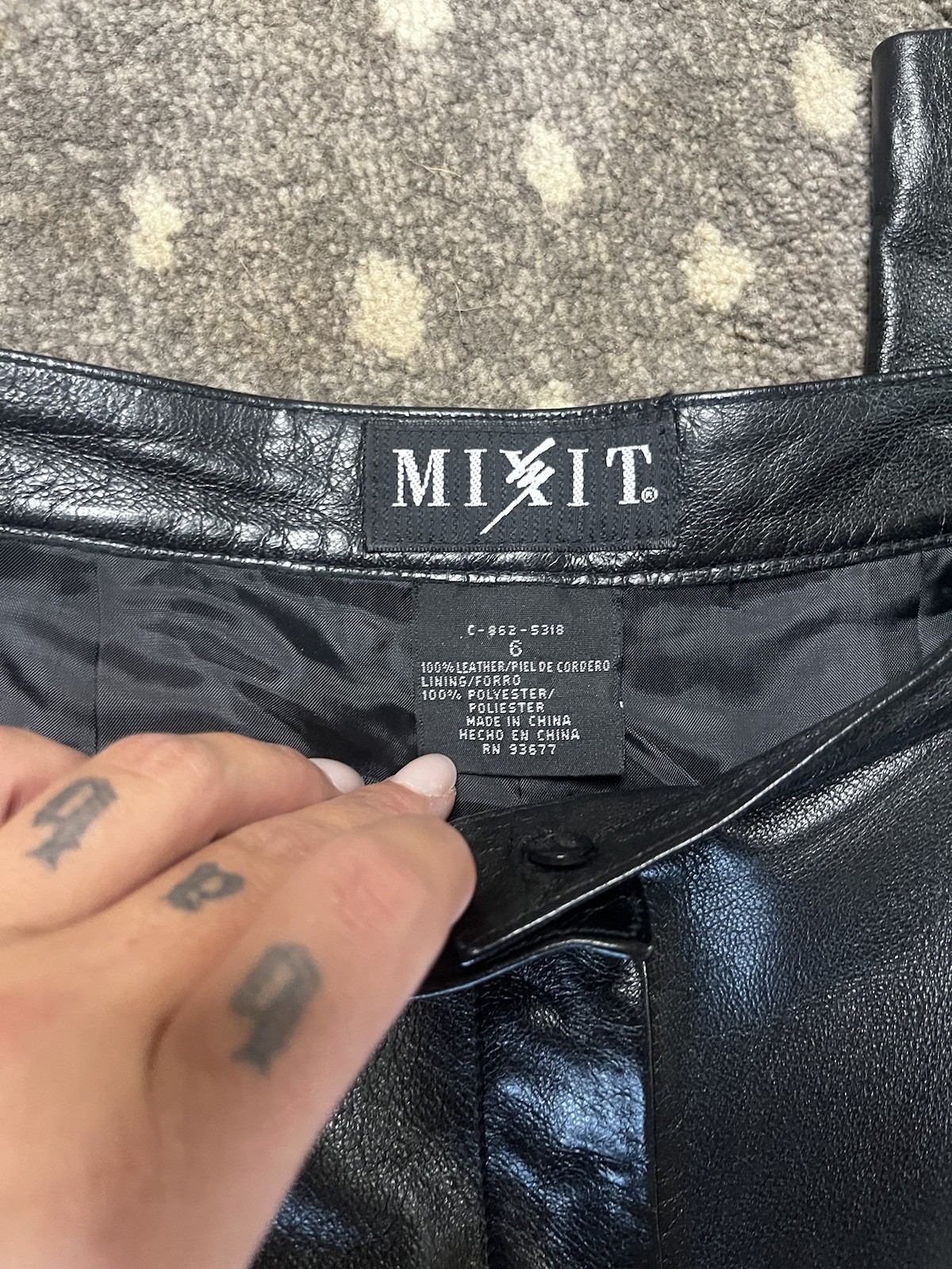 Vintage 90s mix it Black Genuine Leather Straight Leg Pants high rise
