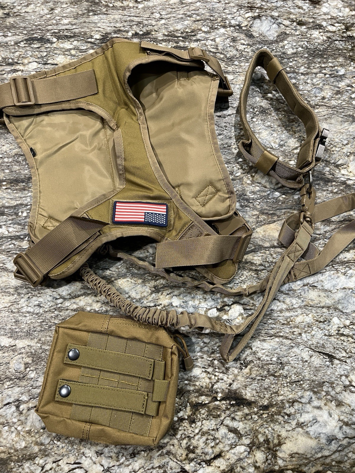 Tactical Dog Training Set Harness, Collar, Leash, Pouch Khaki Large NEW