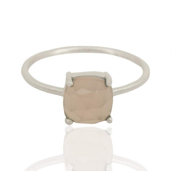 Rose Chalcedony Gemstone 925 Sterling Silver Sleek Designer Ring Jewelry