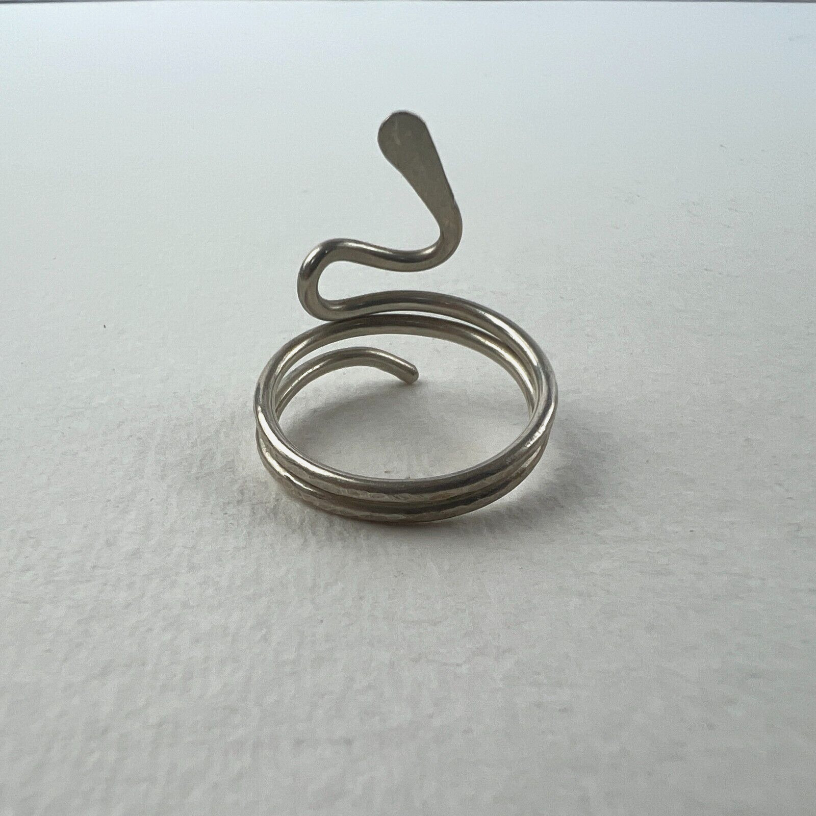 как выглядит Sterling Silver Snake Ring 8.5 Artisan Handmade Unisex Jewelry 925 Hammered Art фото