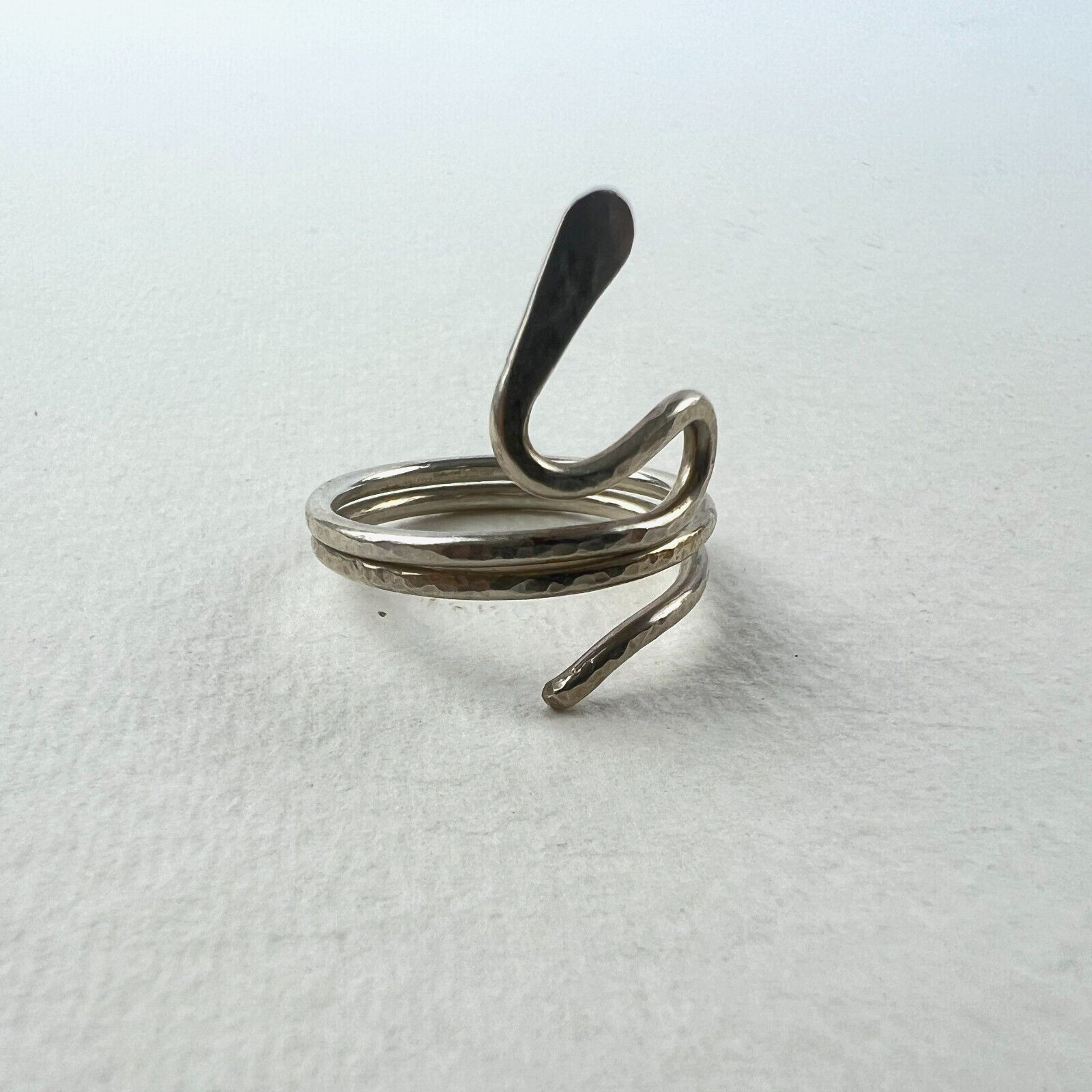 Sterling Silver Snake Ring 8.5 Artisan Handmade Unisex Jewelry 925 Hammered Art
