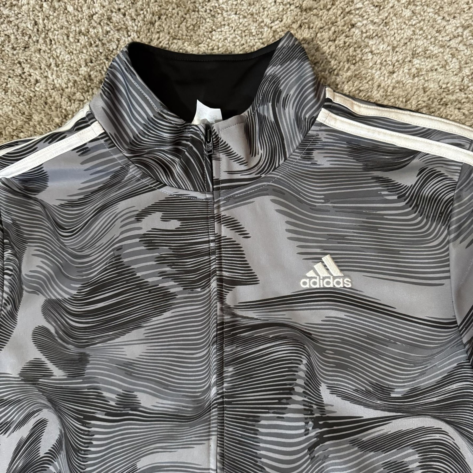 как выглядит Adidas Jacket Youth XL 18/20 Gray Black White Zip Up Track Top Athletic Stripes фото