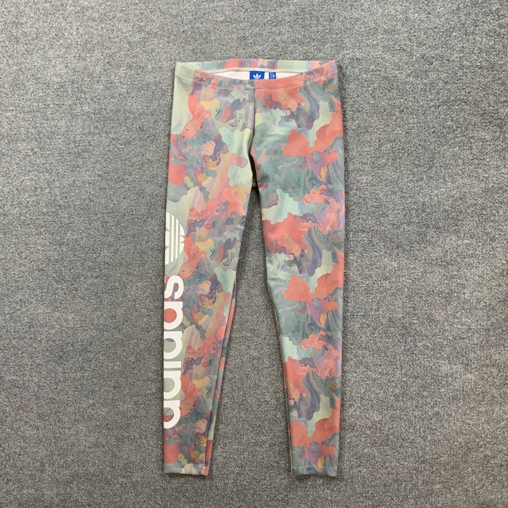 Adidas Leggings Womens M Medium Multi Pastel Camo Pull On Trefoil Spellout Logo