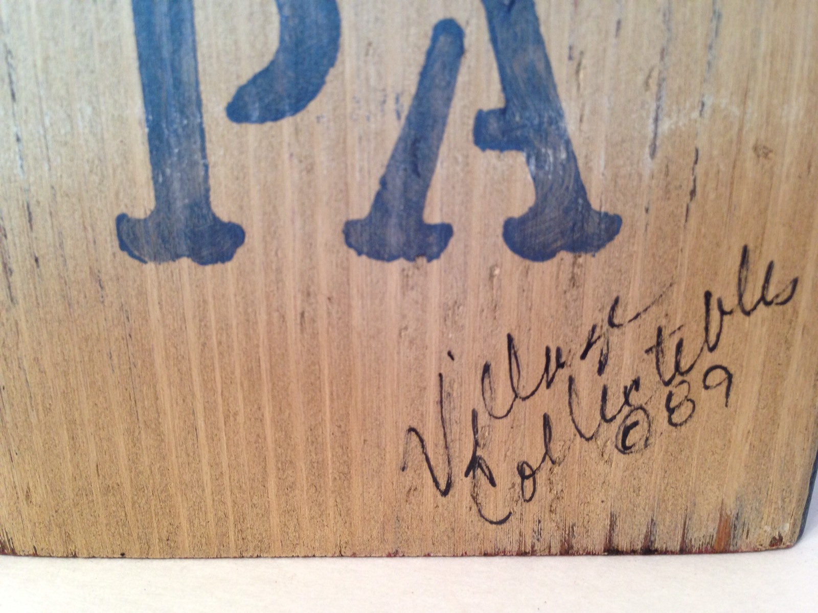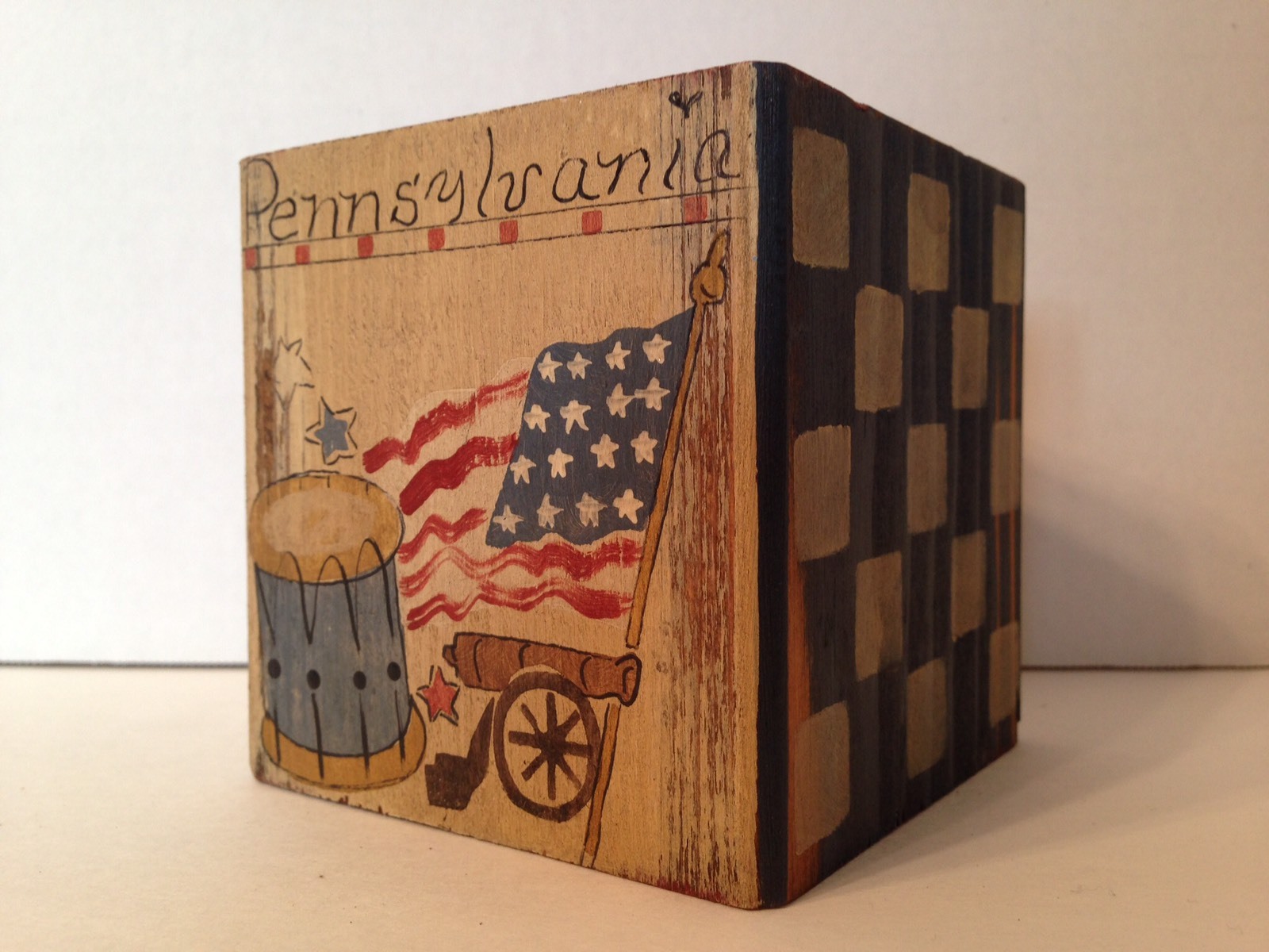 PRIMITIVE FARM COUNTRY VINTAGE 1989 HANDMADE WOODEN STATE BLOCK/PENNSYLVANIA