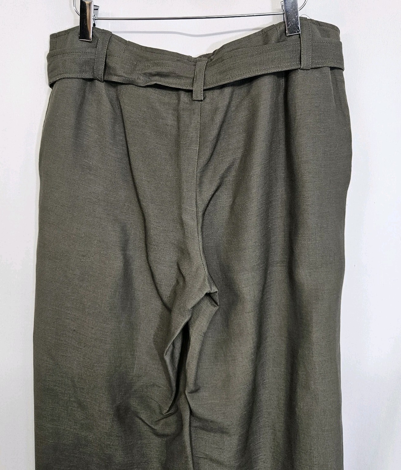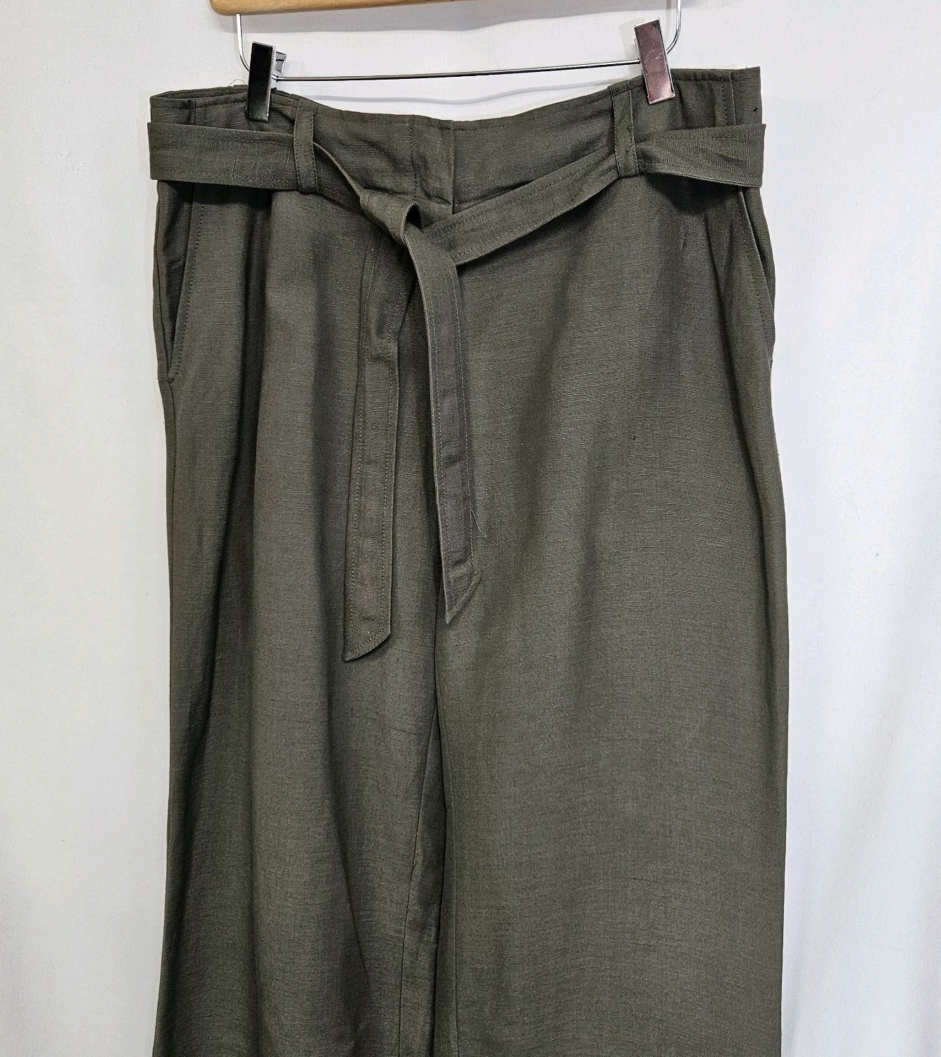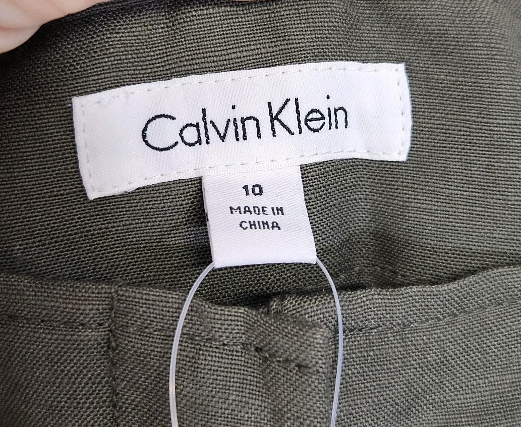как выглядит Calvin Klein Olive Green Linen Blend Belted Wide Leg Pants Size 10 NWT фото