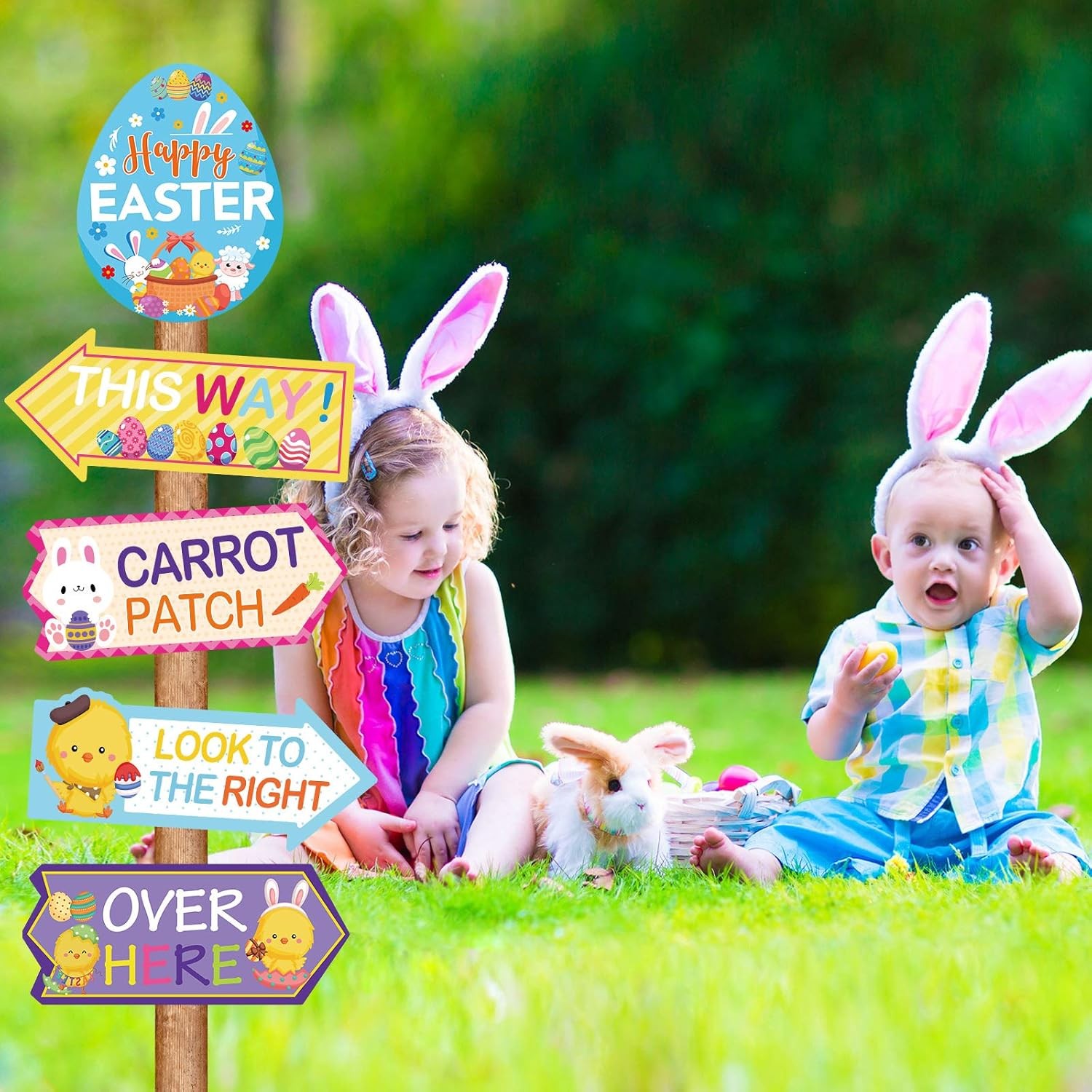 Zonon 20 Pieces Easter Egg Hunt Signs Outdoor Yellow, Blue, Green, Orange