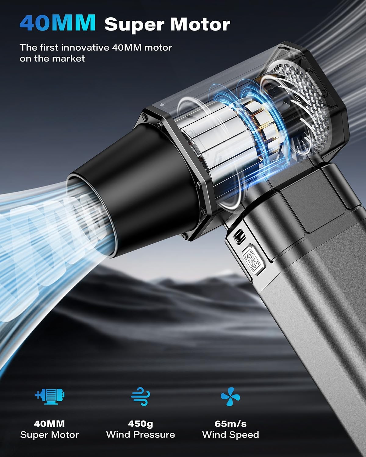 Electric Air Duster-Upgrade 40mm Big Motor, Compressed Air Duster with 450g W...