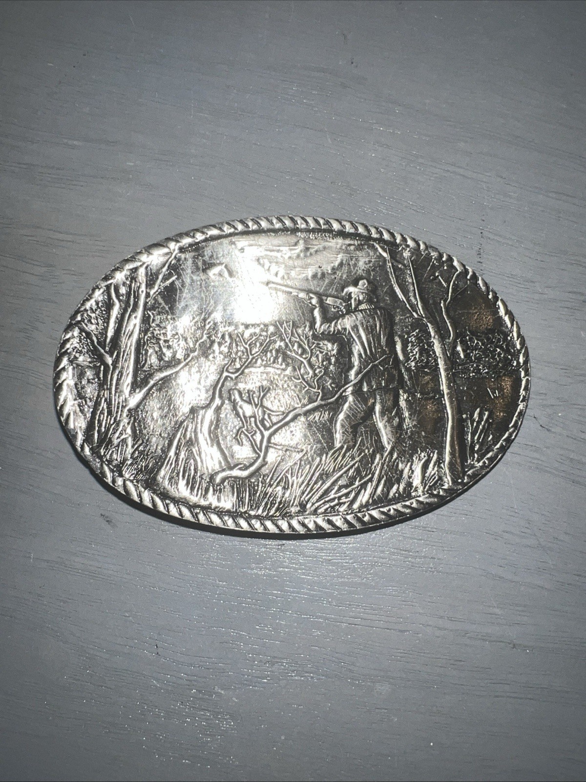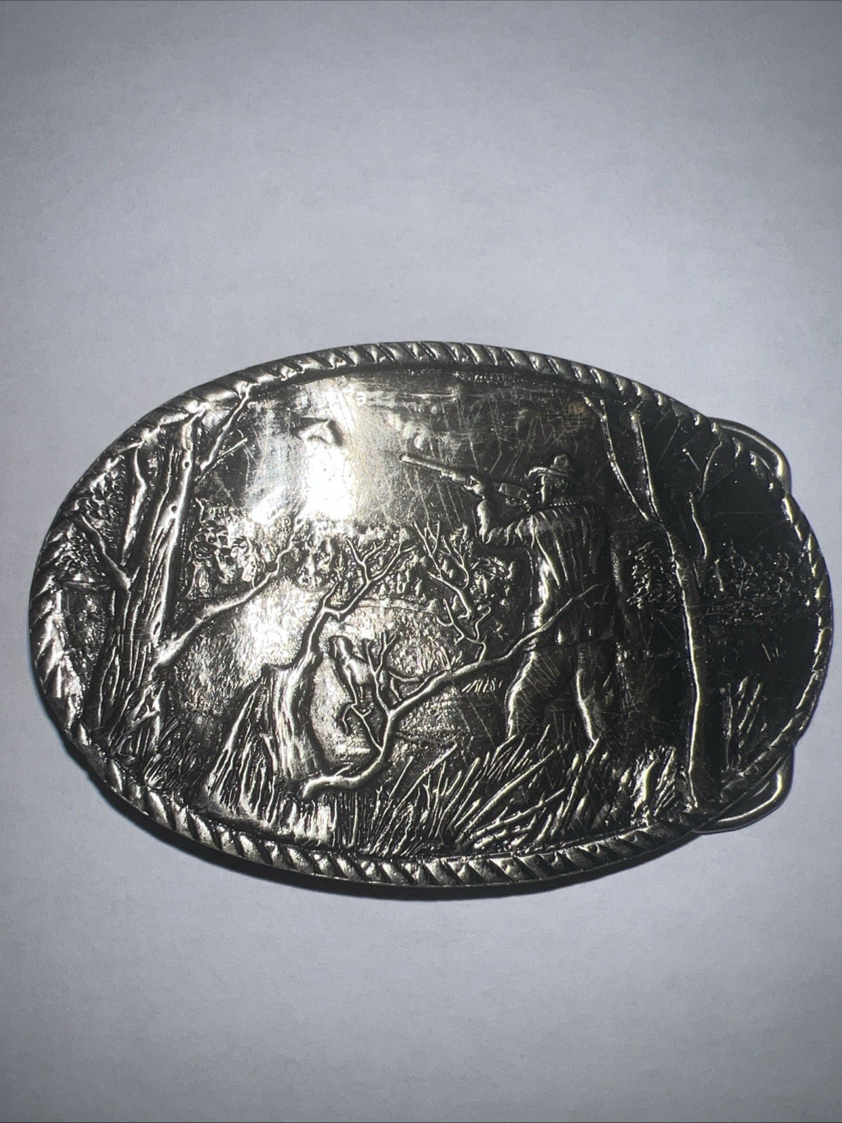 как выглядит VTG Waterfowl Duck Hunting Metal Belt Buckle Ducks Hunting Dogs Engraving фото
