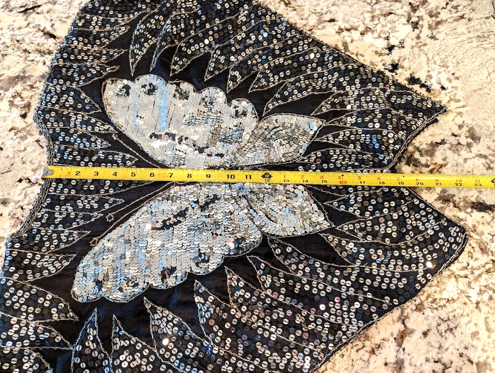 как выглядит VTG 70s 100 Silk Silver and Black Sequin Beaded BUTTERFLY Disco Top Size M/L фото
