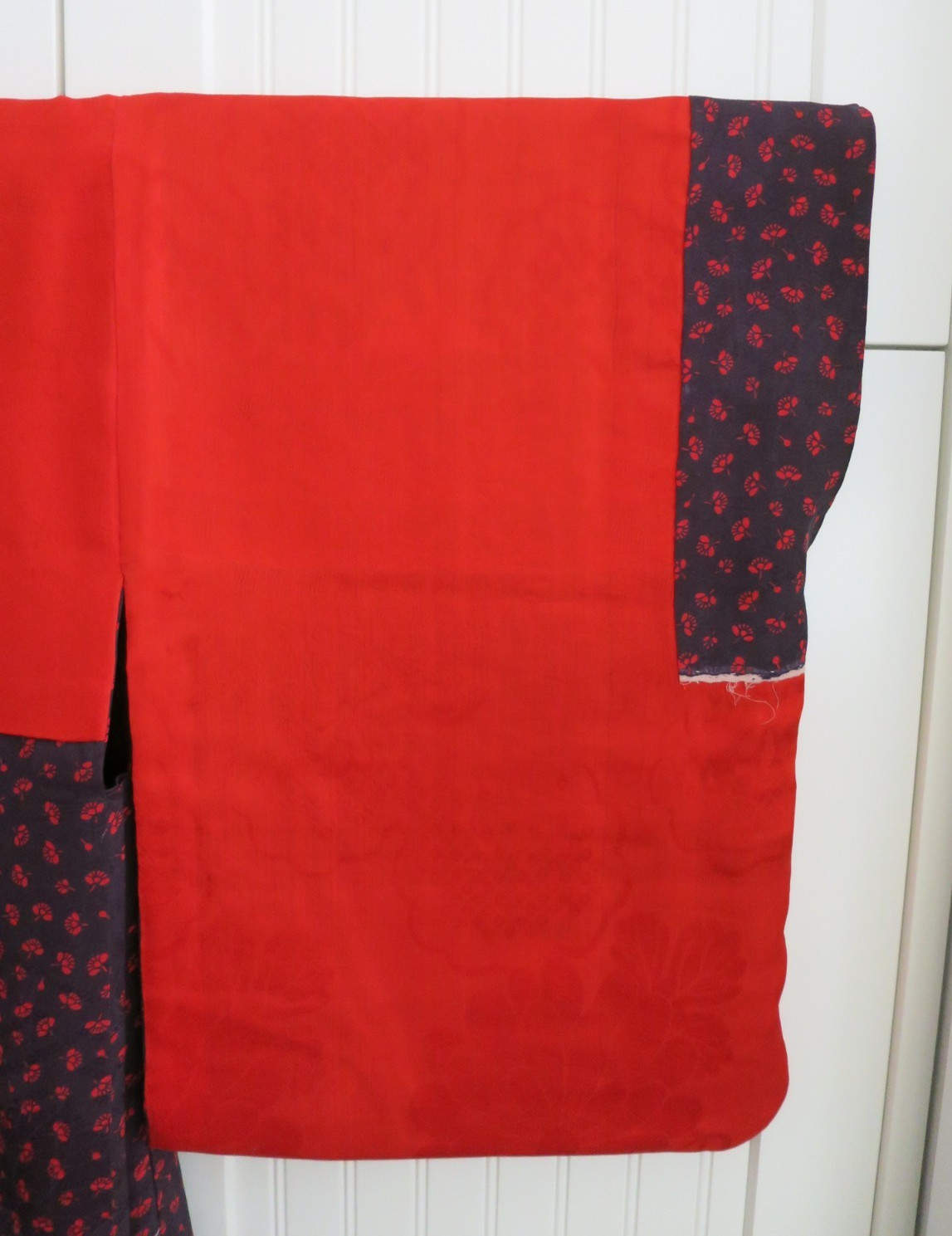 как выглядит VTG Japanese Black Haori Kimono Jacket Red Mini Flowers Paper Crane Orizuru фото