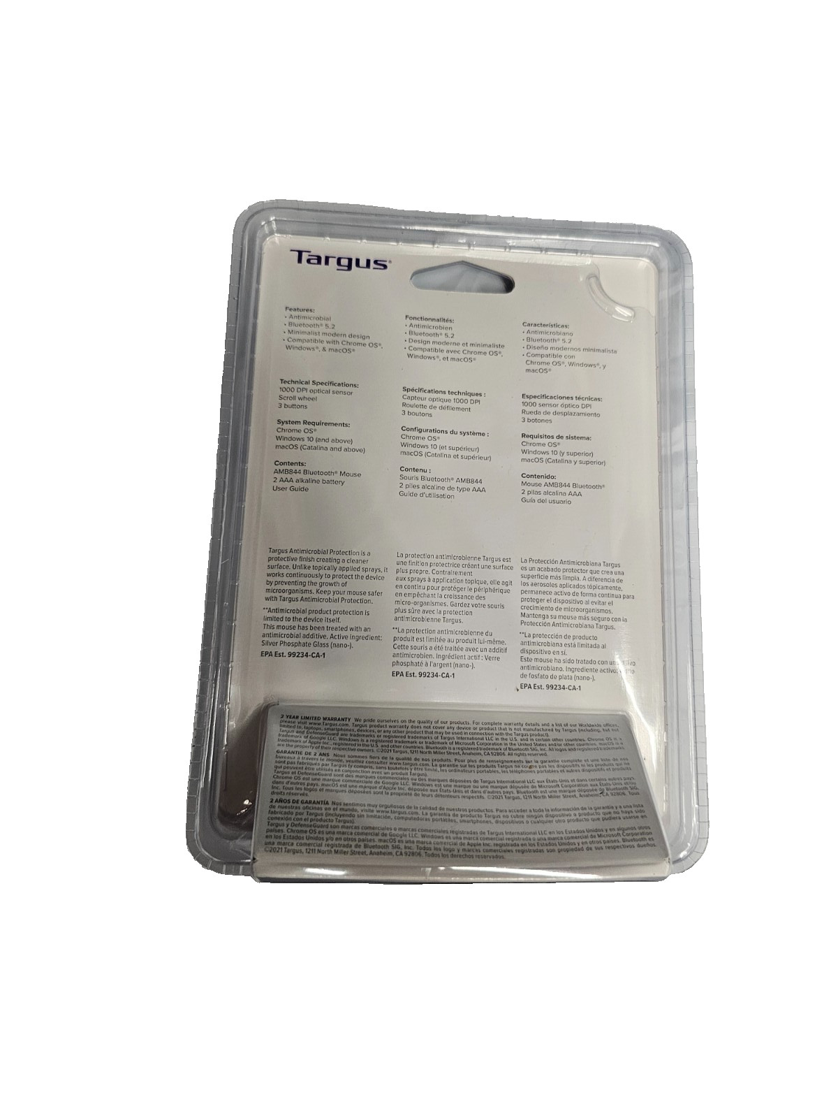 Targus AMB844 3-Button BLACK Bluetooth Antimicrobial Mouse