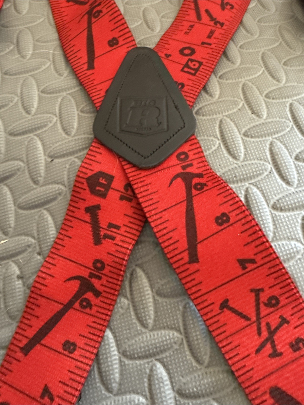 как выглядит Big R Red Measuring Tape And Tools Suspenders Perfect For Dads Everywhere фото