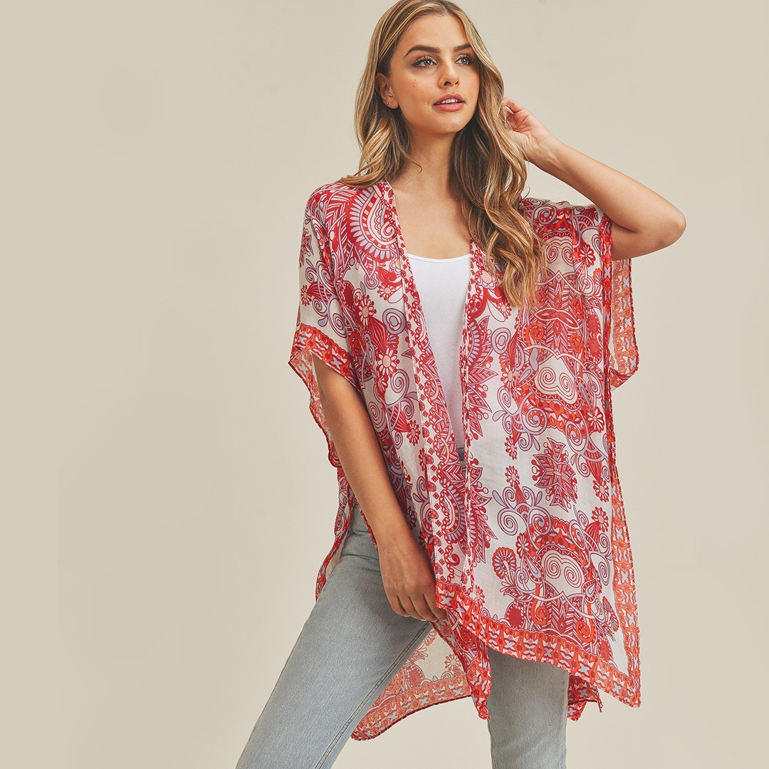 Anthropologie Style Bohemian Open Front Kimono Summer Beach Tassel Cover Up