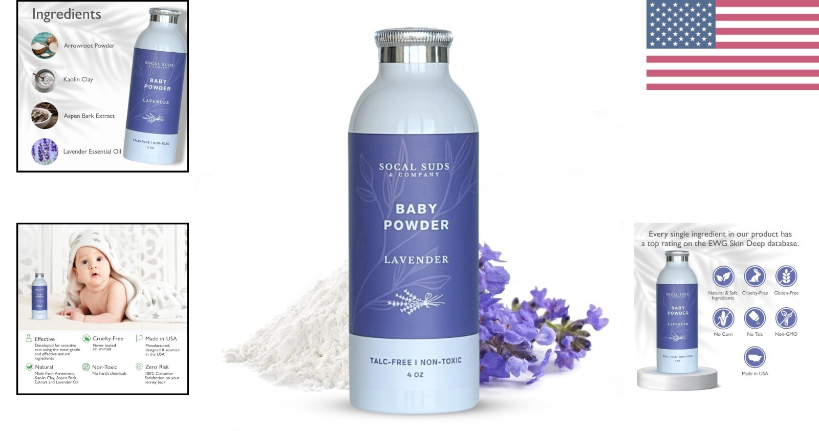 Natural Lavender Baby Powder - 4oz Soothing Care for Sensitive Skin