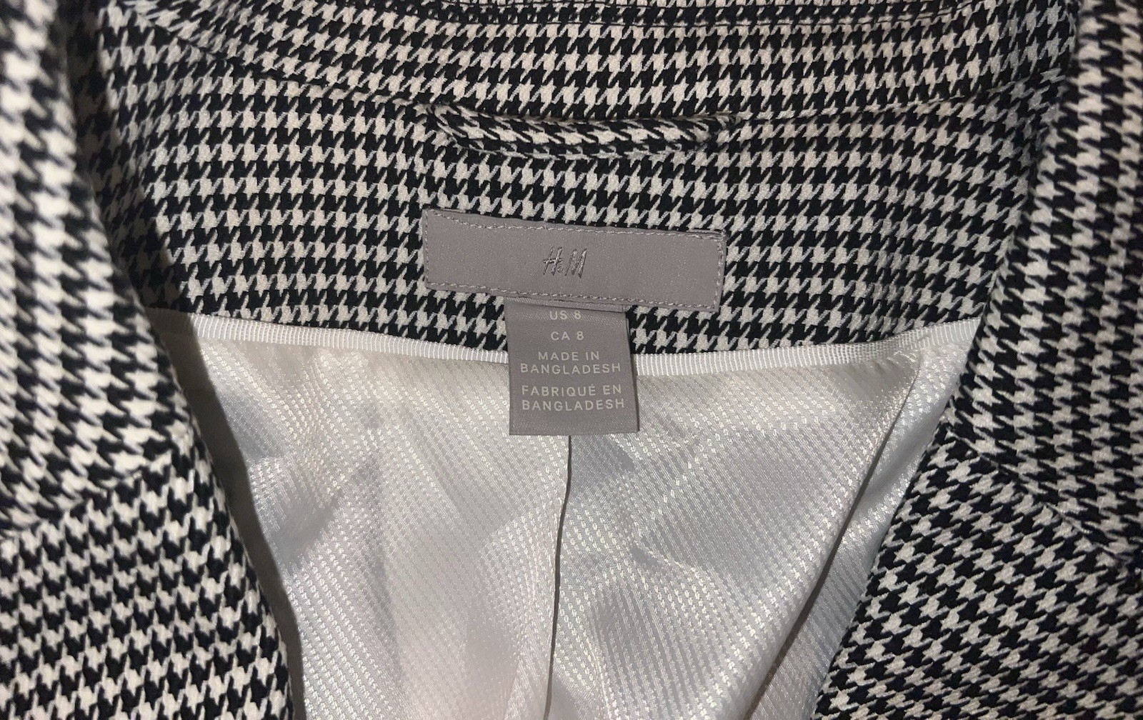как выглядит H M Women s Houndstooth Print One Button Blazer Jacket Black White Lined Sz 8 фото