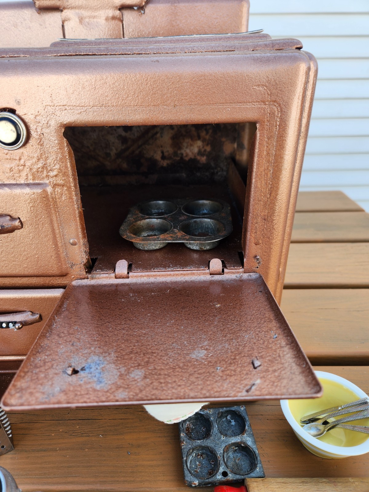 Vintage Antique Metal Prosperity Junior Toy Stove Oven Sears Dishes Bo Beep Tin