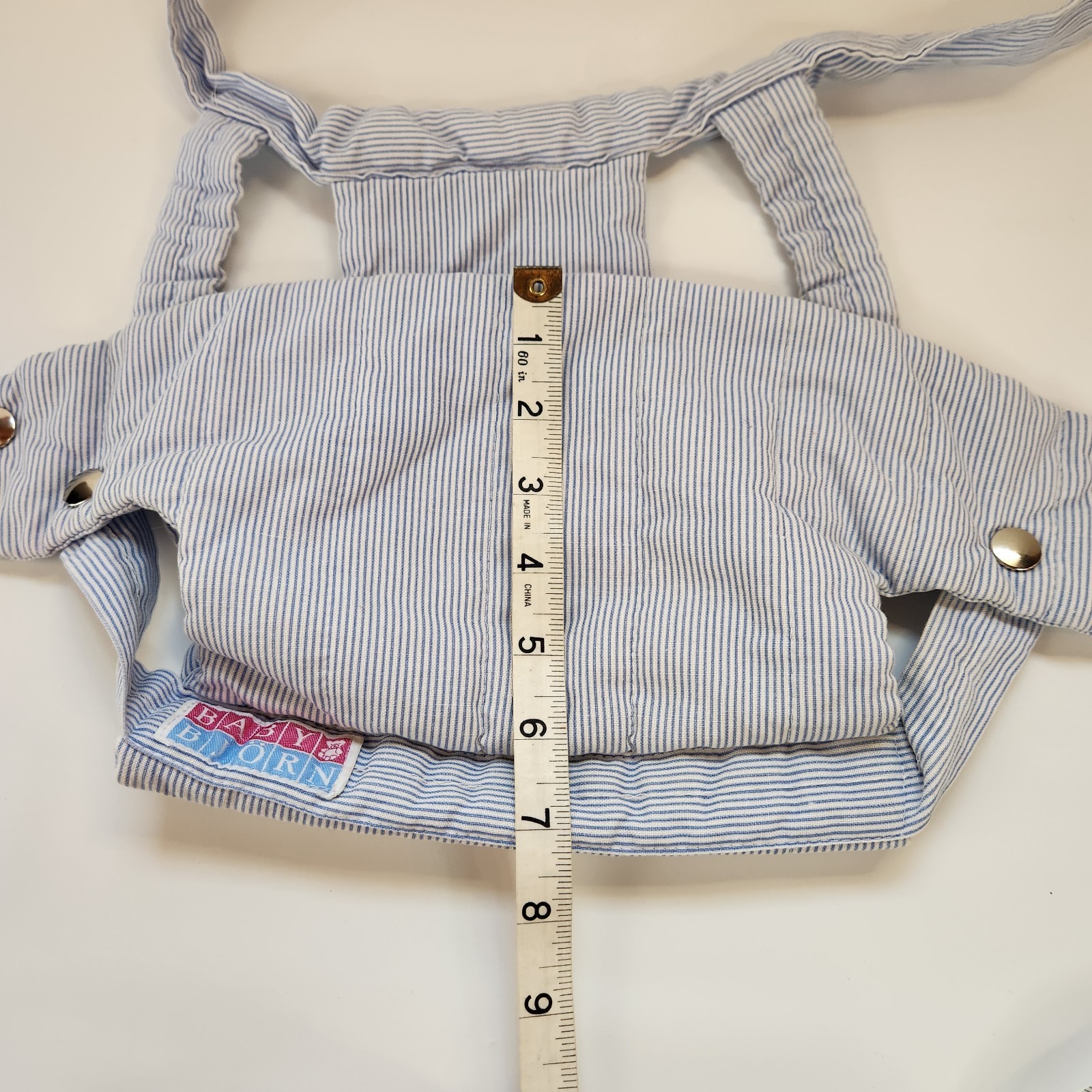 как выглядит Vintage Baby BJorn Carrier Made In Sweden Cotton Exterior Blue White Striped фото
