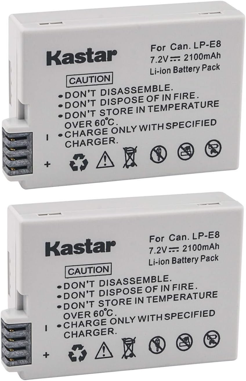 2 Pack Replacement Batteries for Canon LP-E8 LPE8 and Canon Rebel T5I T4I T3I T2