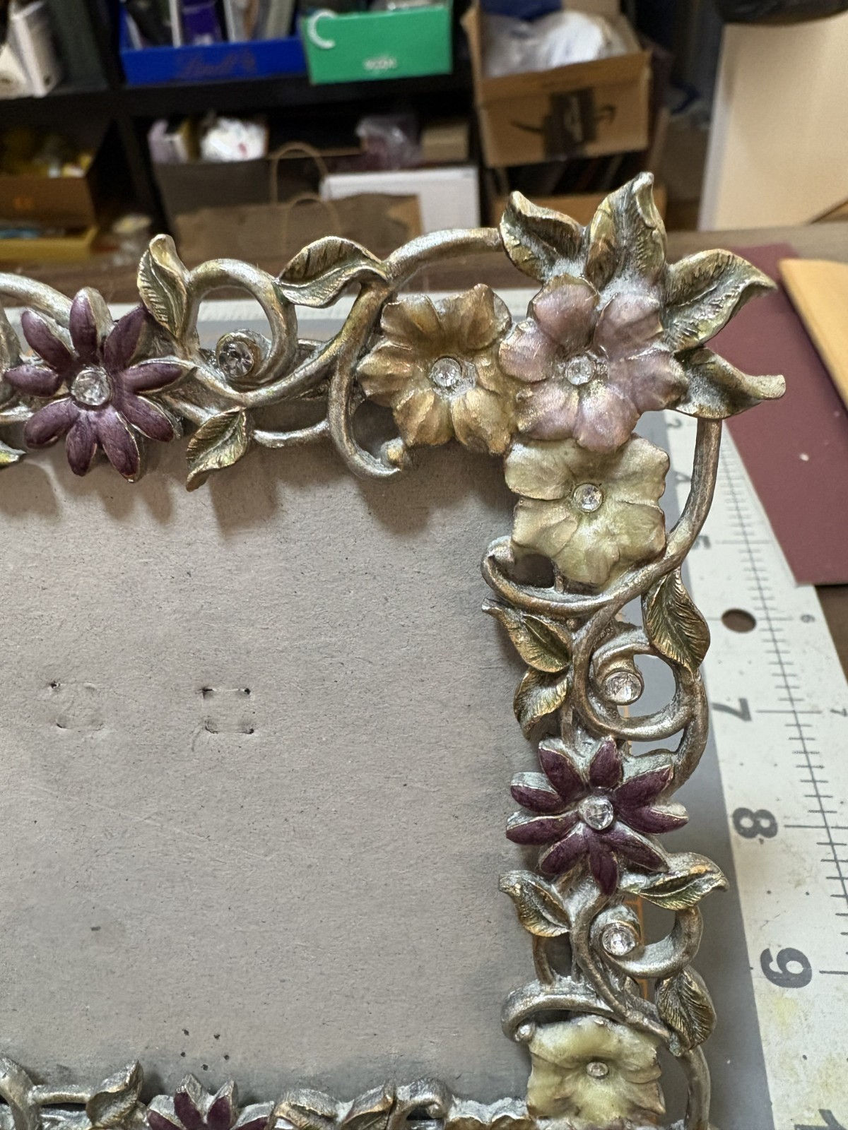 • Decorative 4" x 4" Floral Crystal Embellished Photo Frame Elegant Flower Design