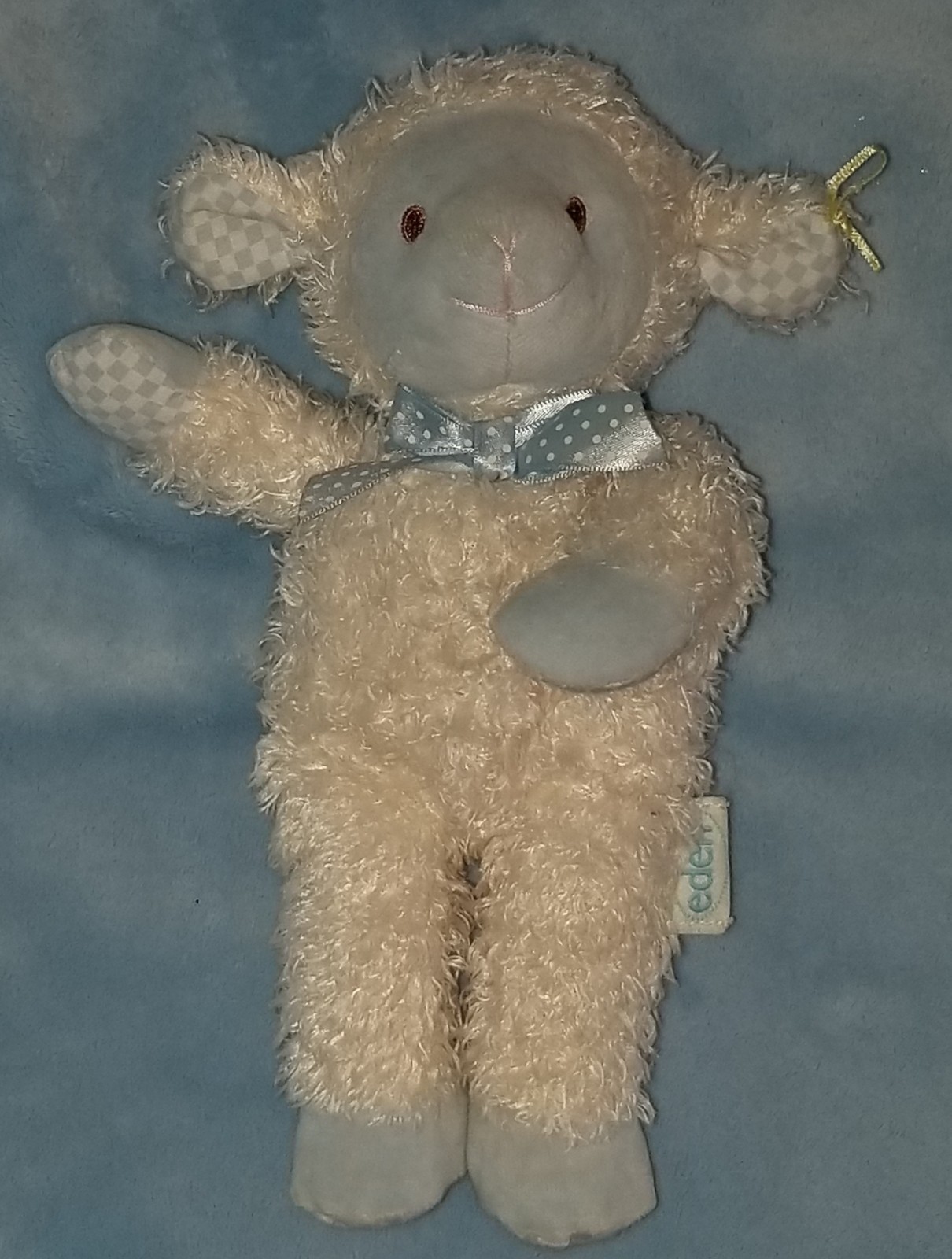 как выглядит Eden Plush Lamb Sheep White Blue Gingham Check 10" Stuffed Toy Learning Curve фото